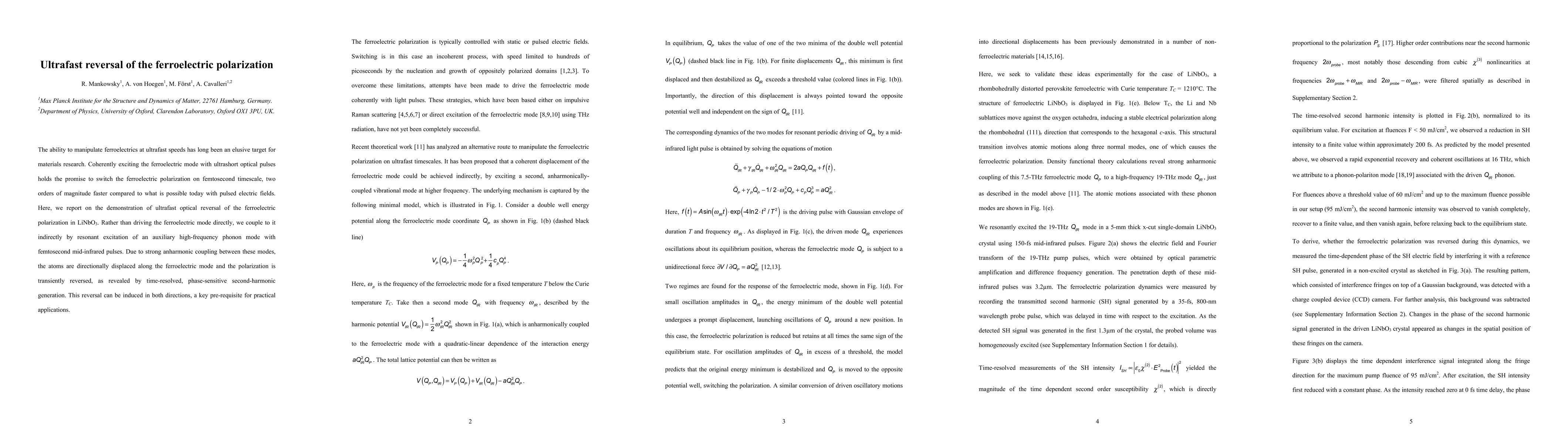 Researchers have demonstrated ultrafast reversal of ferroelectric polarization in LiNbO3 using mid-infrared pulses, achieving a timescale two orders of magnitude faster than current methods.