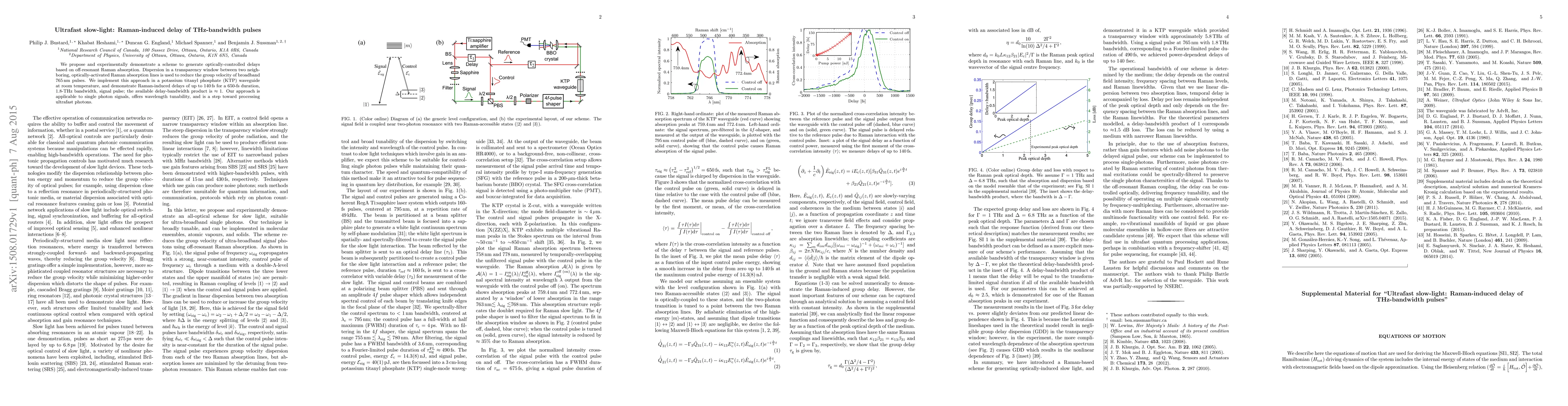This paper proposes and demonstrates a method for generating optically-controlled delays using off-resonant Raman absorption in a KTP waveguide, achieving delays of up to 140 fs for 1.8-THz bandwidth pulses. The technique offers wavelength tunability and is a step toward processing ultrafast photons.