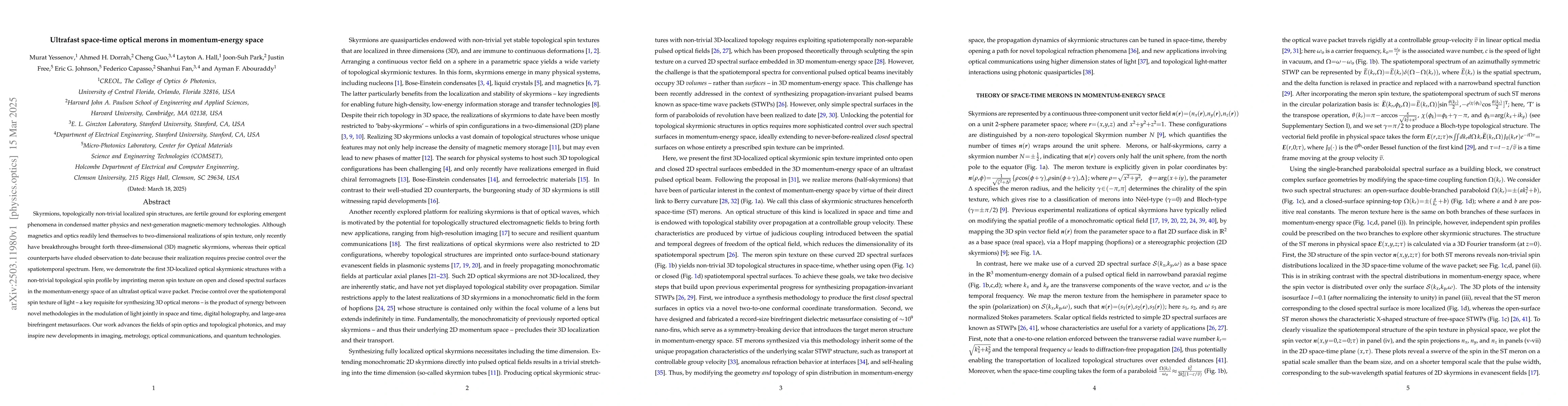 The paper introduces a novel method for generating and characterizing 3D optical merons in momentum-energy space, paving the way for new developments in ultrafast photonic quasiparticles with rich nanoscale topology.