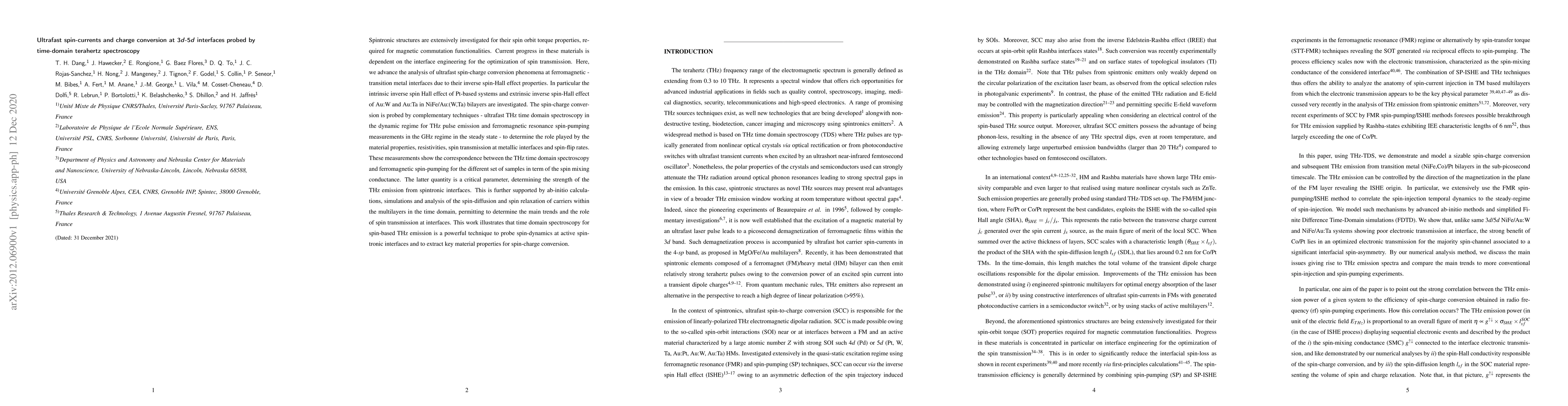 This paper investigates ultrafast spin-charge conversion phenomena at ferromagnetic-transition metal interfaces using time-domain terahertz spectroscopy and ferromagnetic resonance spin-pumping. The study highlights the role of material properties and spin transmission in determining spin mixing conductance, crucial for THz emission strength, and demonstrates the effectiveness of THz spectroscopy for probing spin-dynamics in spintronic interfaces.