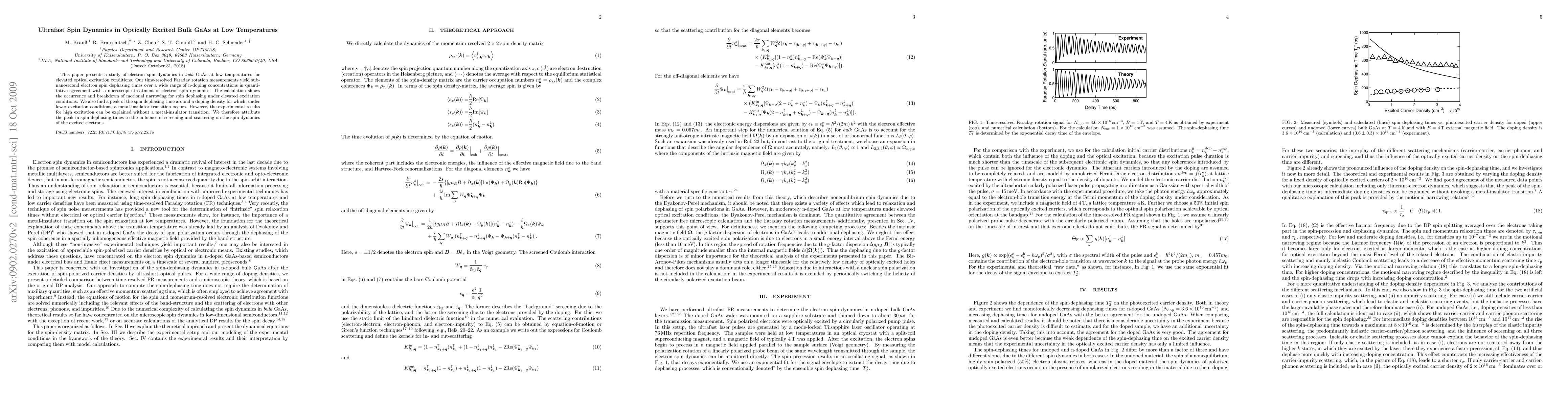 This paper presents a study of electron spin dynamics in bulk GaAs at low temperatures for elevated optical excitation conditions. Our time-resolved Faraday rotation measurements yield sub-nanosecond electron spin dephasing-times over a wide range of n-doping concentrations in quantitative agreement with a microscopic treatment of electron spin dynamics. The calculation shows the occurrence and breakdown of motional narrowing for spin dephasing under elevated excitation conditions. We also find a peak of the spin dephasing time around a doping density for which, under lower excitation conditions, a metal-insulator transition occurs. However, the experimental results for high excitation can be explained without a metal-insulator transition. We therefore attribute the peak in spin-dephasing times to the influence of screening and scattering on the spin-dynamics of the excited electrons.