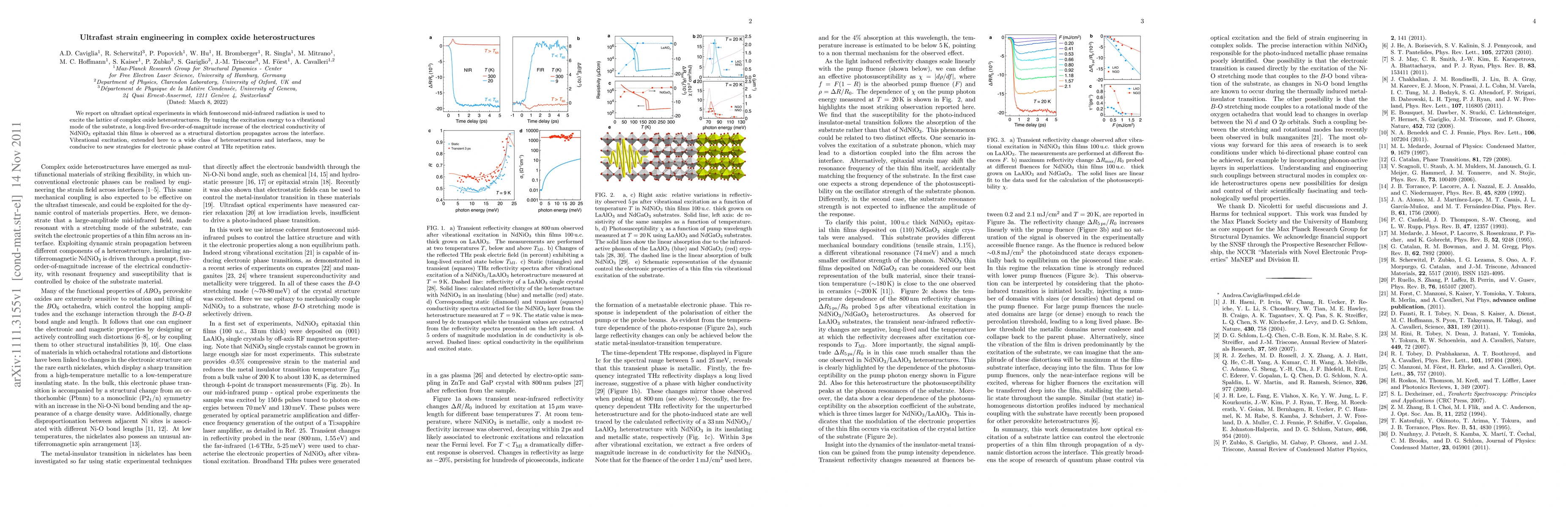 This study demonstrates ultrafast optical excitation using femtosecond mid-infrared radiation to induce significant structural distortions in complex oxide heterostructures, resulting in a substantial increase in electrical conductivity of NdNiO3 thin films. This method opens up potential new strategies for electronic phase control at terahertz frequencies.