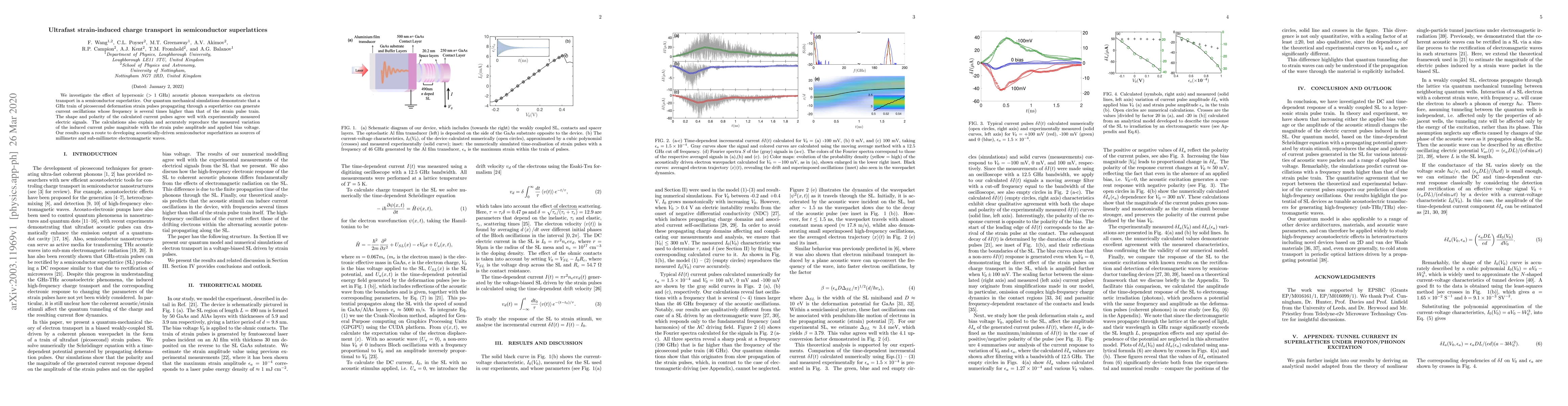 This paper explores how hypersonic acoustic phonon wavepackets affect electron transport in semiconductor superlattices, revealing that GHz strain pulses can induce current oscillations at frequencies higher than the strain pulses. The study's quantum mechanical simulations accurately reproduce experimental measurements, suggesting potential for acoustically-driven superlattices in generating millimeter and sub-millimeter electromagnetic waves.