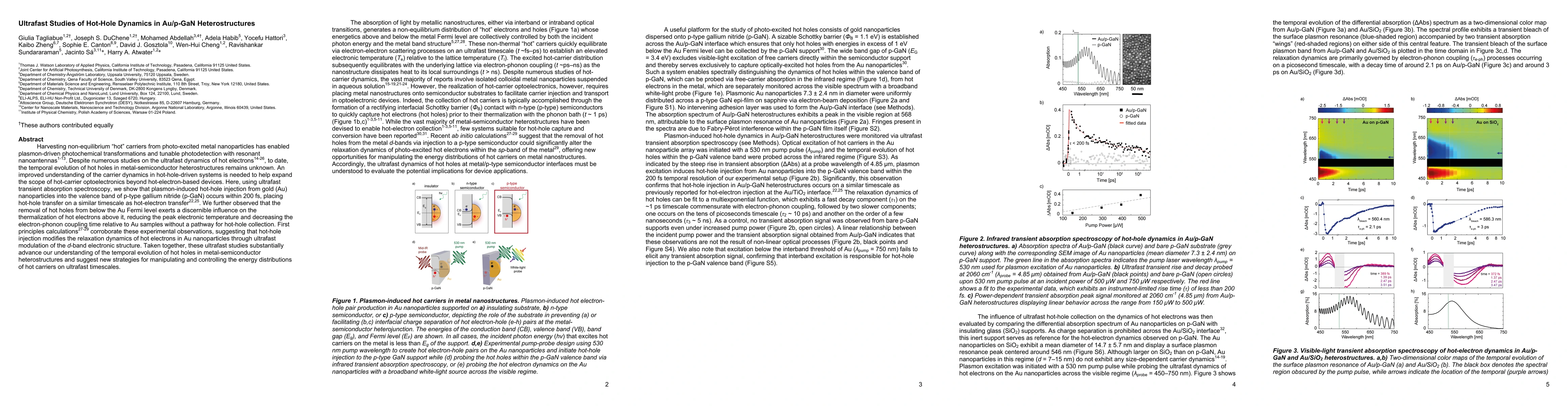 This paper investigates the ultrafast dynamics of hot holes in Au/p-GaN heterostructures using ultrafast transient absorption spectroscopy, revealing that hot-hole injection occurs within 200 fs. The study finds that hot-hole removal influences the thermalization of hot electrons, reducing the peak temperature and electron-phonon coupling time, and suggests new strategies for controlling hot carrier energy distributions.