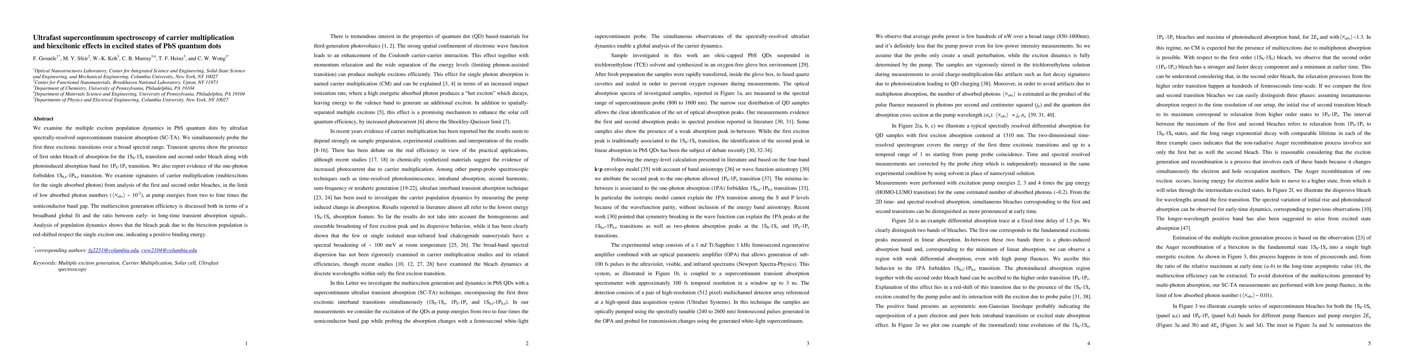 of carrier multiplication (multiexcitons for the single absorbed photon) from