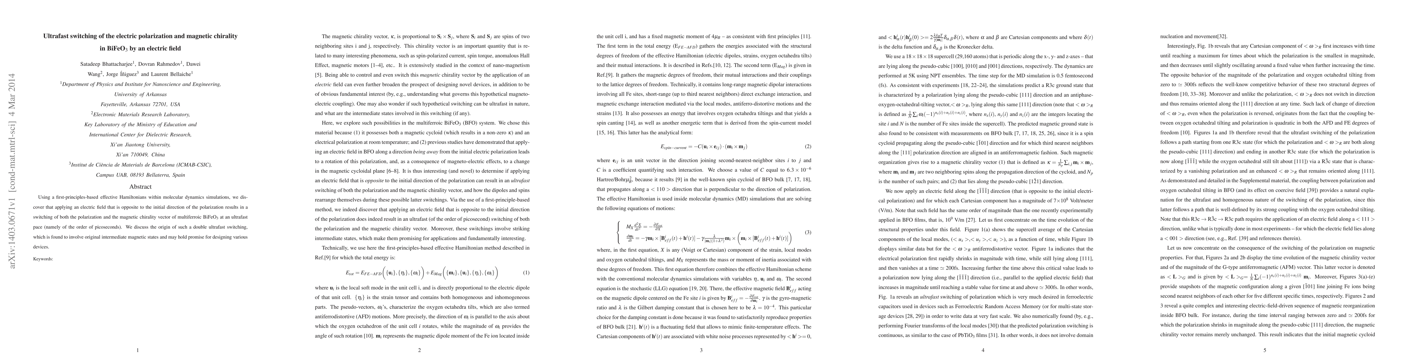 This research reveals ultrafast switching of both electric polarization and magnetic chirality in BiFeO3 under an opposing electric field, achieved within picoseconds, using first-principles simulations. The study identifies the involvement of unique intermediate magnetic states, suggesting potential for advanced device design.