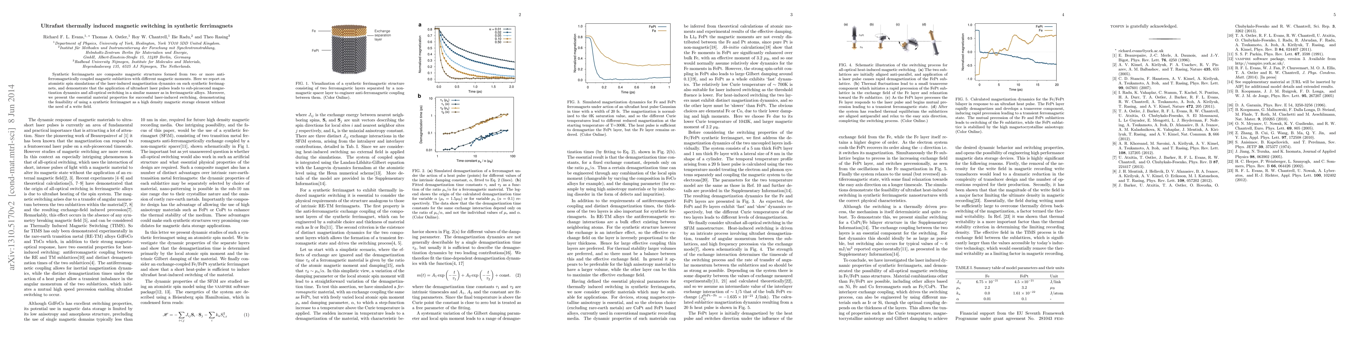 This paper reports on ultrafast laser-induced magnetic switching in synthetic ferrimagnets, revealing sub-picosecond magnetization dynamics and all-optical switching akin to ferrimagnetic alloys, highlighting their potential for high-density magnetic storage.