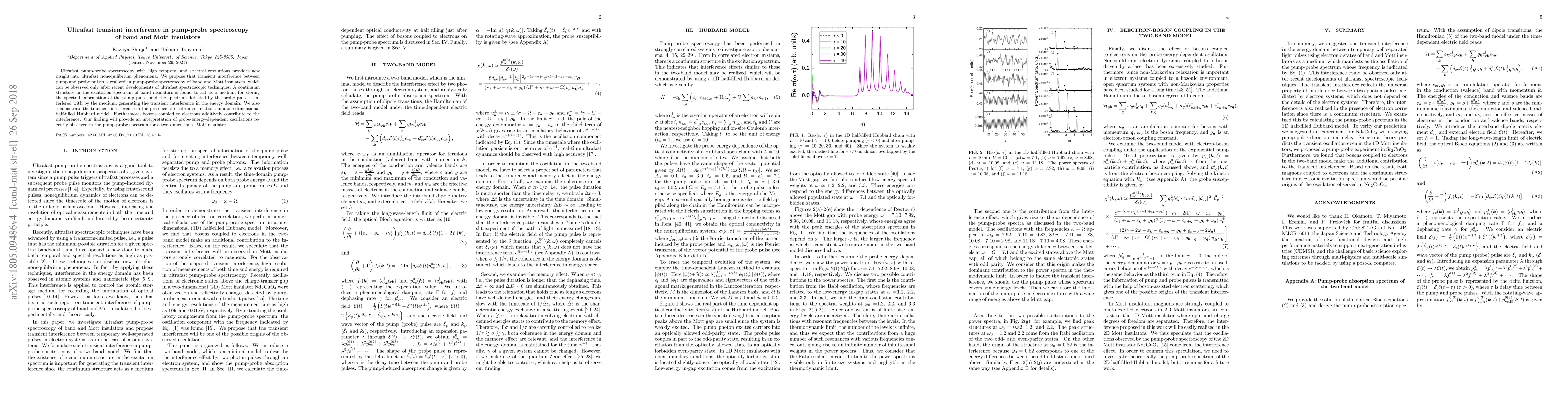 This paper investigates ultrafast transient interference in pump-probe spectroscopy of band and Mott insulators, revealing that a continuum structure in band insulators stores spectral information from the pump pulse, leading to interference observed in the probe spectrum. The study also demonstrates this phenomenon in electron-correlated systems and suggests its relevance to recent observations in two-dimensional Mott insulators.
