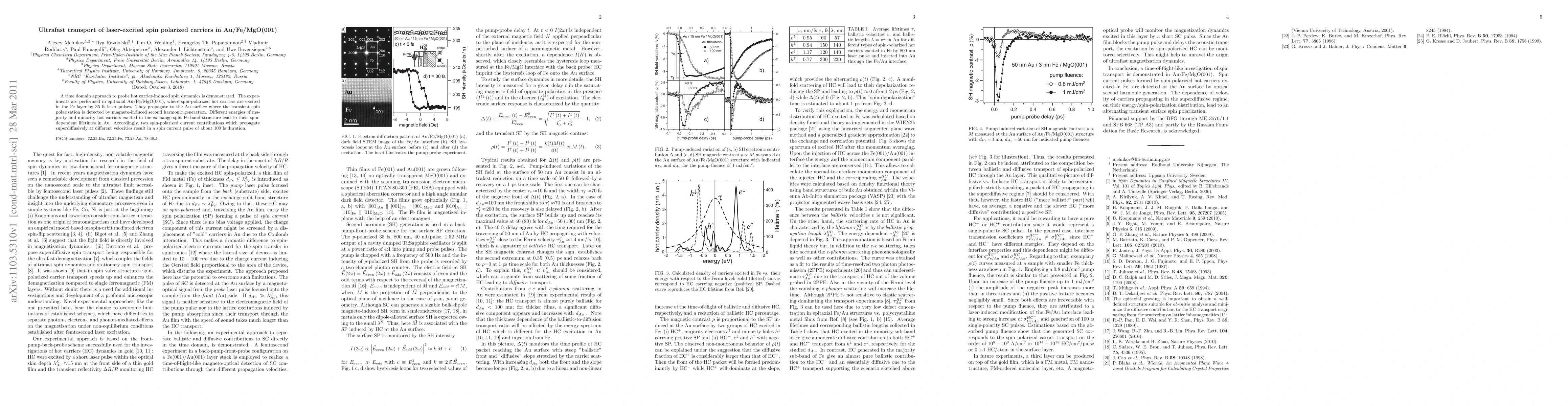 Researchers probe hot carrier-induced spin dynamics in Au/Fe/MgO(001) using time domain approach, revealing superdiffusive spin current pulse of 100 fs duration.