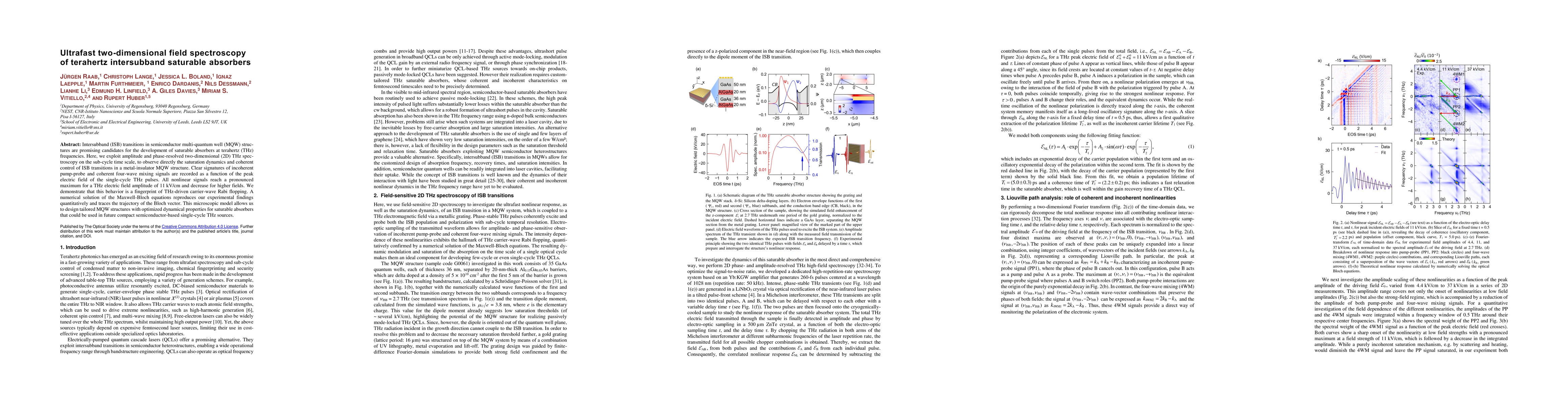 This paper investigates ultrafast two-dimensional THz spectroscopy to observe the saturation dynamics and coherent control of intersubband transitions in semiconductor multi-quantum well structures. The study reveals that nonlinear signals peak at a THz electric field amplitude of 11 kV/cm, attributed to THz-driven carrier-wave Rabi flopping, and proposes a microscopic model for designing optimized saturable absorbers for future THz sources.