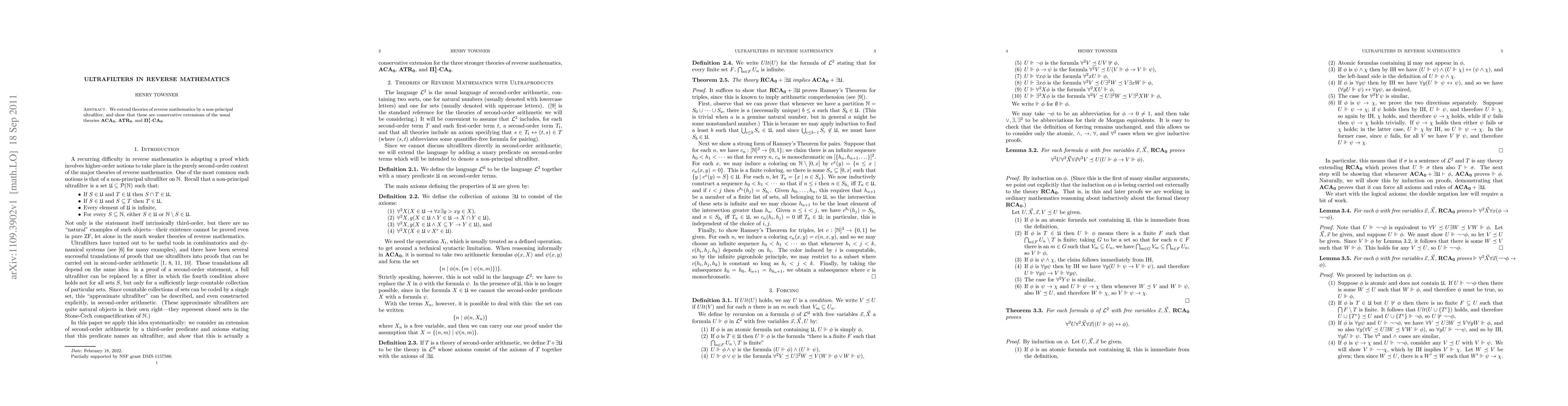 Summary: This paper extends reverse mathematics using non-principal ultrafilters, demonstrating that these extensions remain conservative over foundational theories like ACA0, ATR0, and Pi11-Comprehension. The results highlight the robustness of these foundational theories.