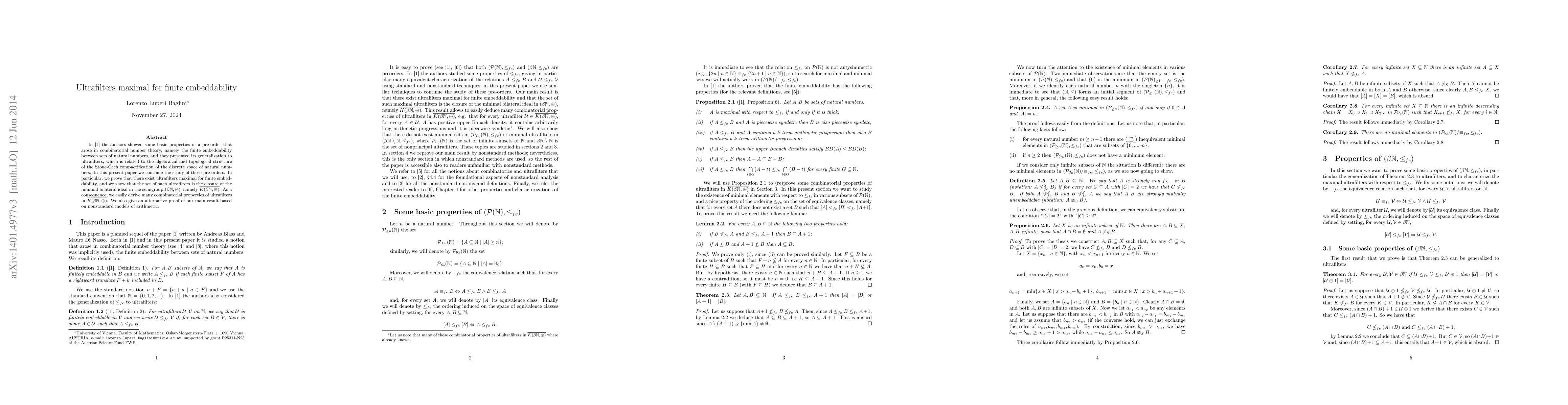 This paper investigates ultrafilters maximal for finite embeddability, proving their existence and showing they form the closure of the minimal bilateral ideal in the semigroup $(\bN,\oplus)$. An alternative proof using nonstandard models of arithmetic is also provided.