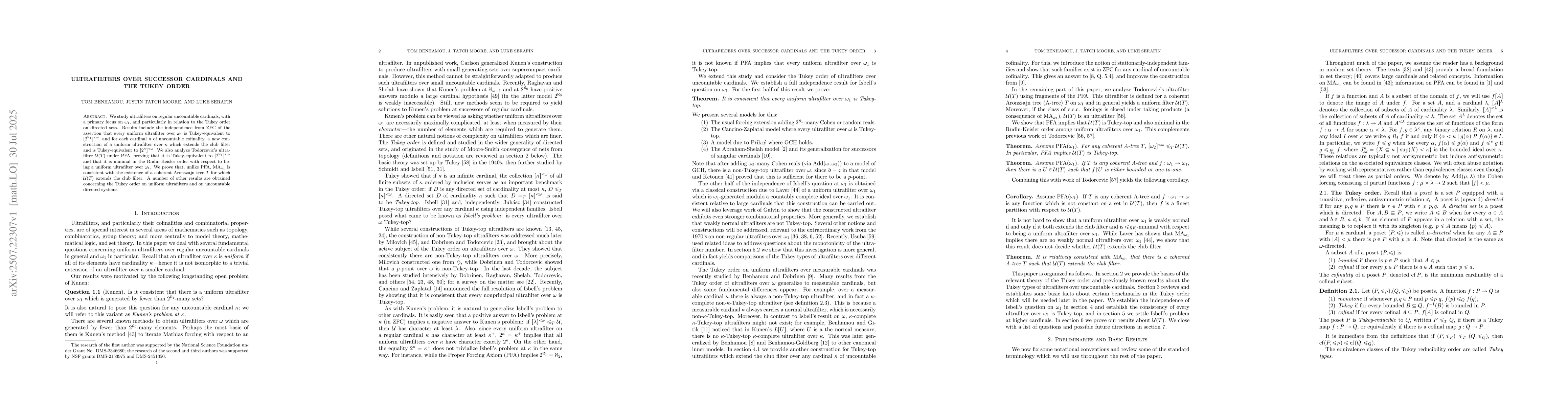 The paper introduces novel constructions and proofs related to uniform ultrafilters over successor cardinals, advancing the theory of Tukey reductions and set-theoretic forcing.