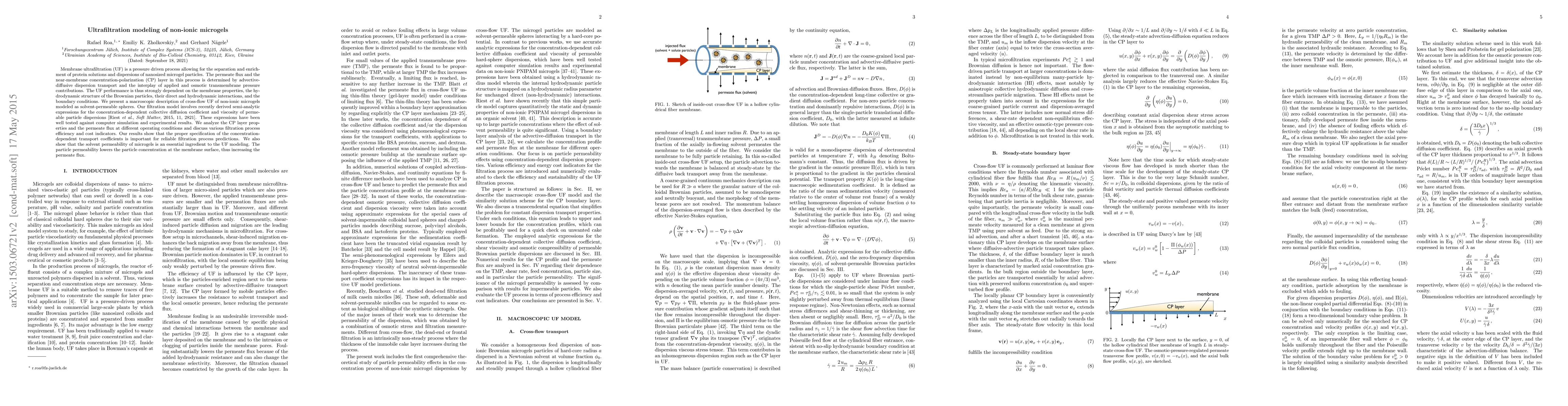 A boundary layer analysis was performed to study the inside-out cross-flow UF of non-ionic microgels.