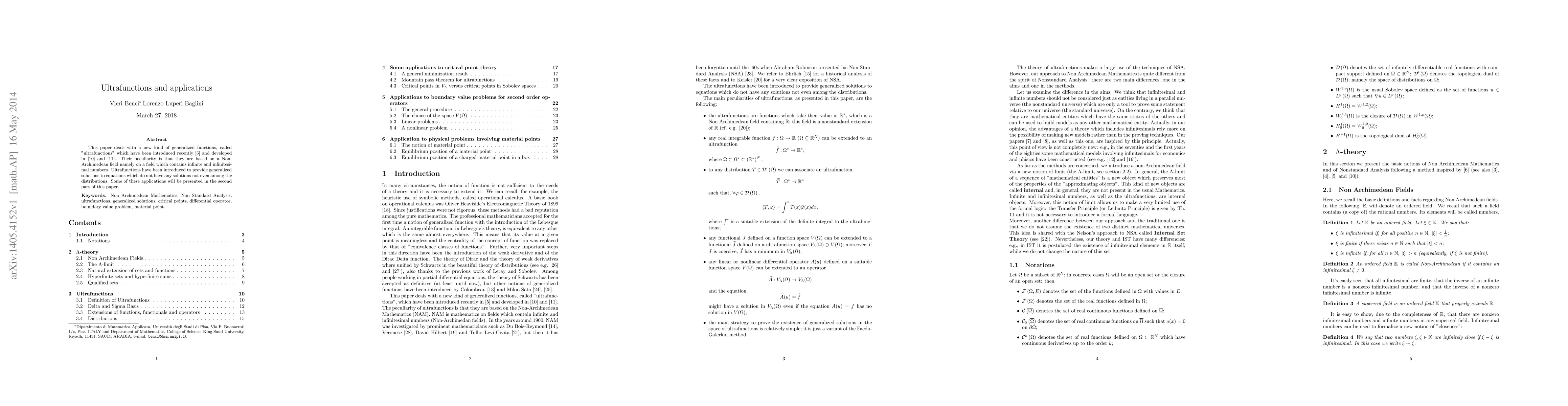 This paper deals with a new kind of generalized functions, called "ultrafunctions" which have been introduced recently and developed in some previous works. Their peculiarity is that they are based on a Non-Archimedean field namely on a field which contains infinite and infinitesimal numbers. Ultrafunctions have been introduced to provide generalized solutions to equations which do not have any solutions not even among the distributions. Some of these applications will be presented in the second part of this paper.