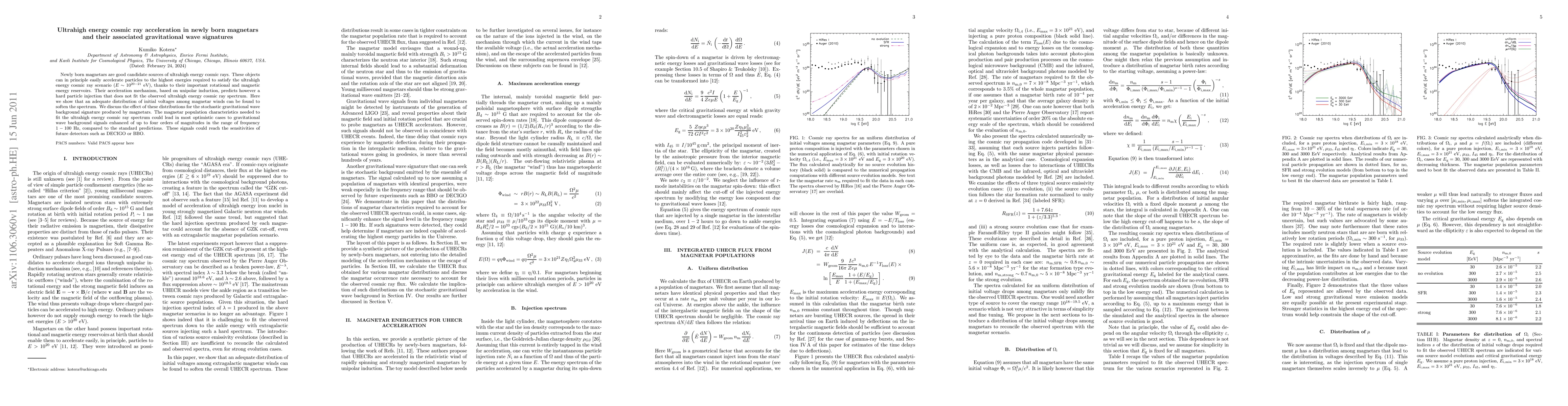 Newly born magnetars can potentially accelerate particles to ultrahigh energies via unipolar induction, though initial models predict a hard spectrum that does not match observations. Adjusting initial voltage distributions in magnetar winds can soften the spectrum, while also enhancing the gravitational wave background signals by up to four orders of magnitude in the frequency range of 1-100 Hz, potentially detectable by future detectors like DECIGO or BBO.