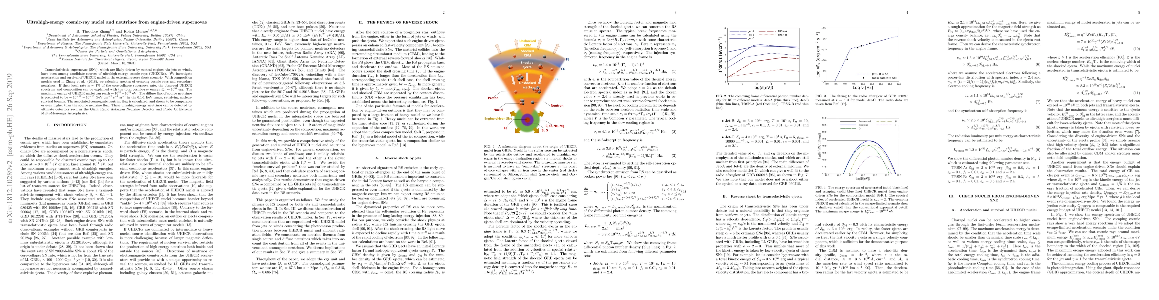 This paper explores the acceleration and survival of ultrahigh-energy cosmic-ray nuclei in transrelativistic supernovae driven by central engines, finding that these sources can explain the observed UHECR spectrum and composition. It predicts a diffuse neutrino flux in the 0.1-1 EeV range, potentially detectable by advanced detectors.