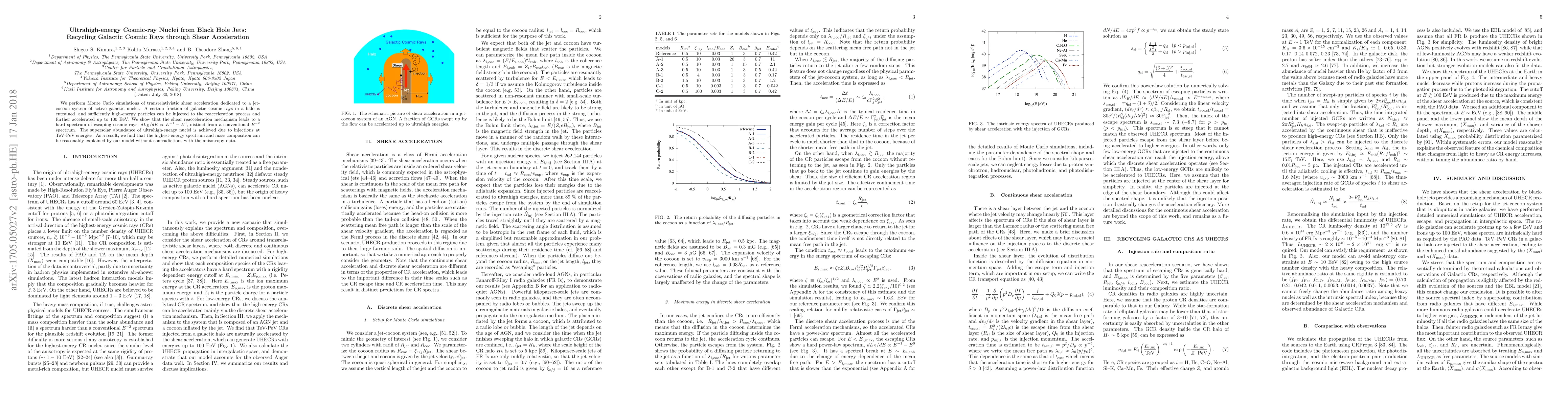 We perform Monte Carlo simulations of transrelativistic shear acceleration dedicated to a jet-cocoon system of active galactic nuclei. A certain fraction of galactic cosmic rays in a halo is entrained, and sufficiently high-energy particles can be injected to the reacceleration process and further accelerated up to 100 EeV. We show that the shear reacceleration mechanism leads to a hard spectrum of escaping cosmic rays, $dL_E/dE\propto E^{-1}-E^0$, distinct from a conventional $E^{-2}$ spectrum. The supersolar abundance of ultrahigh-energy nuclei is achieved due to injections at TeV-PeV energies. As a result, we find that the highest-energy spectrum and mass composition can be reasonably explained by our model without contradictions with the anisotropy data.