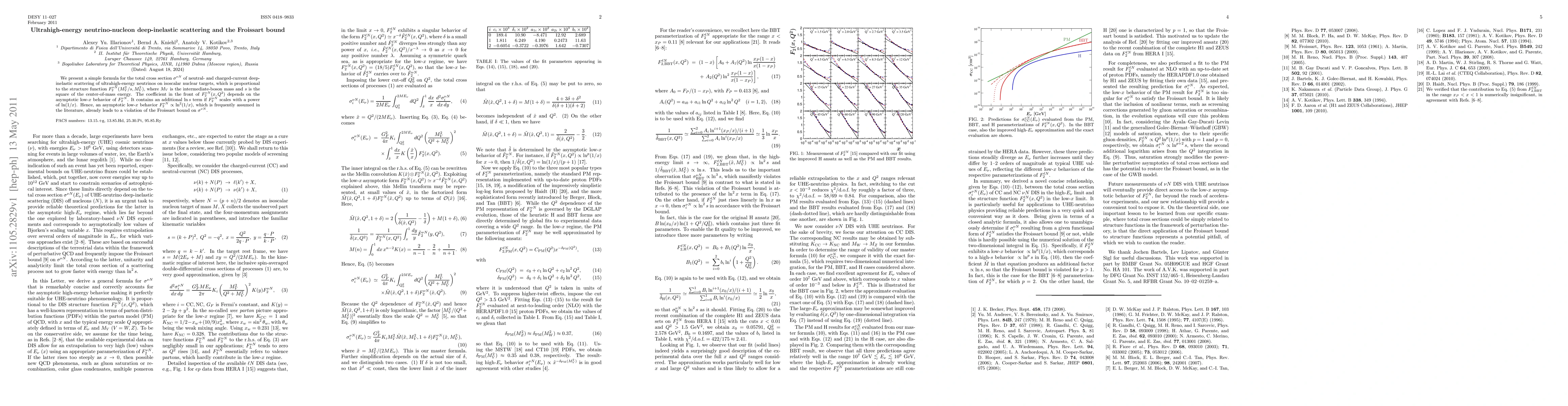 We present a simple formula for the total cross section sigma^{nu N} of neutral- and charged-current deep-inelastic scattering of ultrahigh-energy neutrinos on isoscalar nuclear targets, which is proportional to the structure function F_2^{nu N}(M_V^2/s, M_V^2), where M_V is the intermediate-boson mass and s is the square of the center-of-mass energy. The coefficient in the front of F_2^{nu N}(x, Q^2) depends on the asymptotic low-x behavior of F_2^{nu N}. It contains an additional ln(s) term if F_2^{nu N} scales with a power of ln(1/x). Hence, an asymptotic low-x behavior F_2^{nu N} propto ln^2(1/x), which is frequently assumed in the literature, already leads to a violation of the Froissart bound on sigma^{nu N}.