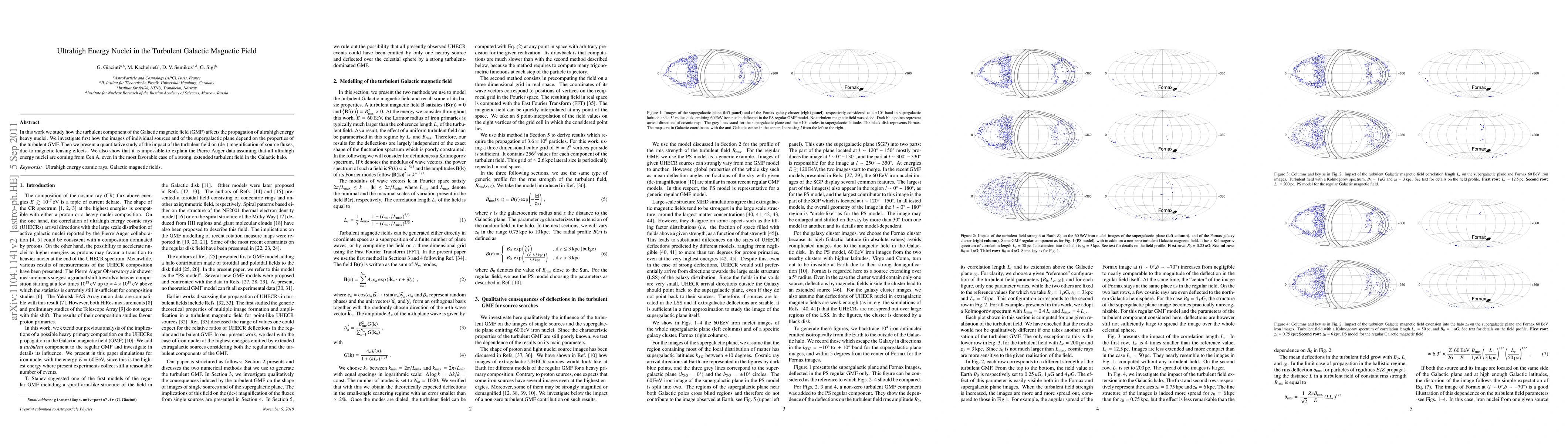 In this work we study how the turbulent component of the Galactic magnetic field (GMF) affects the propagation of ultrahigh energy heavy nuclei. We investigate first how the images of individual sources and of the supergalactic plane depend on the properties of the turbulent GMF. Then we present a quantitative study of the impact of the turbulent field on (de-) magnification of source fluxes, due to magnetic lensing effects. We also show that it is impossible to explain the Pierre Auger data assuming that all ultrahigh energy nuclei are coming from Cen A, even in the most favorable case of a strong, extended turbulent field in the Galactic halo.