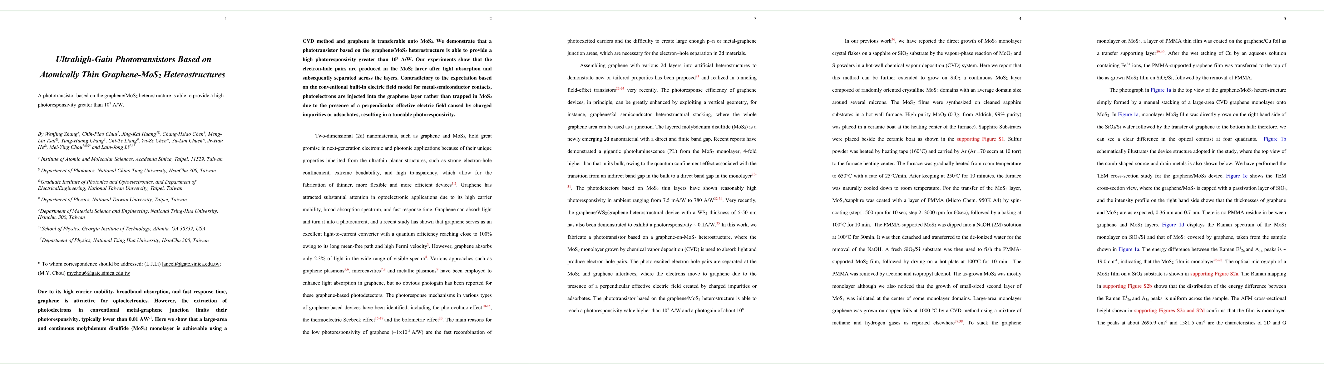 This paper demonstrates the fabrication of ultrahigh-gain phototransistors using a graphene-MoS2 heterostructure, achieving photoresponsivity greater than 107 A/W. The study reveals that photoelectrons are injected into graphene rather than being trapped in MoS2 due to the Fermi level alignment, enabling a tunable photoresponsivity via external electric fields.