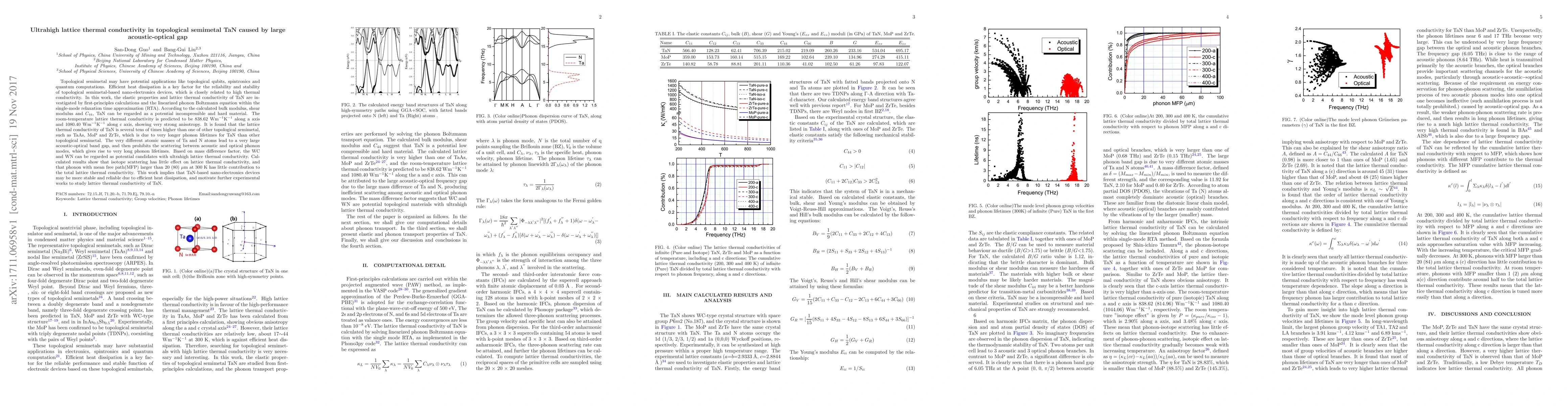 Topological semimetal may have potential applications like topological qubits, spintronics and quantum computations. Efficient heat dissipation is a key factor for the reliability and stability of topological semimetal-based nano-electronics devices, which is closely related to high thermal conductivity. In this work, the elastic properties and lattice thermal conductivity of TaN are investigated by first-principles calculations and the linearized phonon Boltzmann equation within the single-mode relaxation time approximation (RTA). According to the calculated bulk modulus, shear modulus and $C_{44}$, TaN can be regarded as a potential incompressible and hard material. The room-temperature lattice thermal conductivity is predicted to be 838.62 $\mathrm{W m^{-1} K^{-1}}$ along a axis and 1080.40 $\mathrm{W m^{-1} K^{-1}}$ along c axis, showing very strong anisotropy. It is found that the lattice thermal conductivity of TaN is several tens of times higher than one of other topological semimetal, such as TaAs, MoP and ZrTe, which is due to very longer phonon lifetimes for TaN than other topological semimetal. The very different atomic masses of Ta and N atoms lead to a very large acoustic-optical band gap, and then prohibits the scattering between acoustic and optical phonon modes, which gives rise to very long phonon lifetimes. Based on mass difference factor, the WC and WN can be regarded as potential candidates with ultrahigh lattice thermal conductivity. Calculated results show that isotope scattering has little effect on lattice thermal conductivity, and that phonon with mean free path(MFP) larger than 20 (80) $\mathrm{\mu m}$ at 300 K has little contribution to the total lattice thermal conductivity. This work implies that TaN-based nano-electronics devices may be more stable and reliable due to efficient heat dissipation.