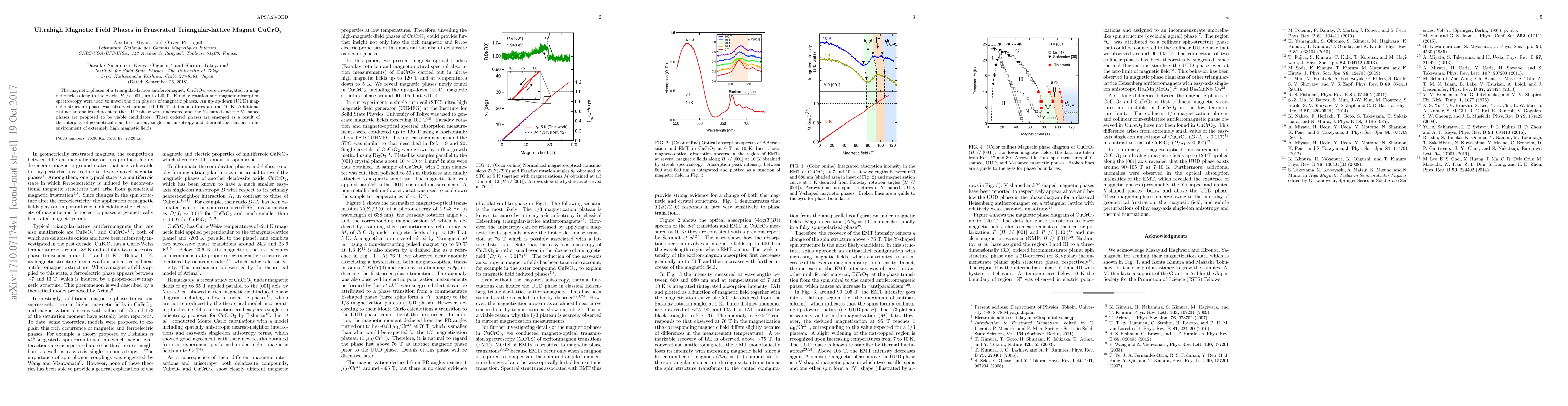 The discovery of additional anomalies in optical absorption intensities of EMT and the existence of Y-shaped and canted V-shaped phases below and above UUD phase.