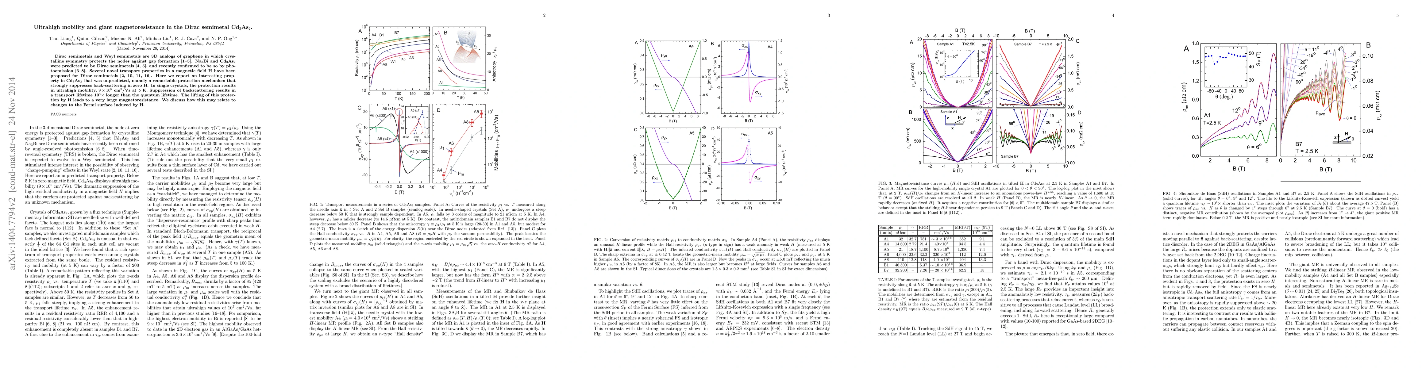 Dirac semimetals and Weyl semimetals are 3D analogs of graphene in which crystalline symmetry protects the nodes against gap formation [1-3]. Na$_3$Bi and Cd$_3$As$_2$ were predicted to be Dirac semimetals [4,5], and recently confirmed to be so by photoemission [6-8]. Several novel transport properties in a magnetic field $\bf H$ have been proposed for Dirac semimetals [2,9-11]. Here we report an interesting property in Cd$_3$As$_2$ that was unpredicted, namely a remarkable protection mechanism that strongly suppresses back-scattering in zero $\bf H$. In single crystals, the protection results in a very high mobility that exceeds $>10^7$ cm$^2$/Vs below 4 K. Suppression of backscattering results in a transport lifetime 10$^4\times$ longer than the quantum lifetime. The lifting of this protection by $\bf H$ leads to an unusual giant $\bf H$-linear magnetoresistance that violates Kohler's rule. We discuss how this may relate to changes to the Fermi surface induced by $\bf H$.