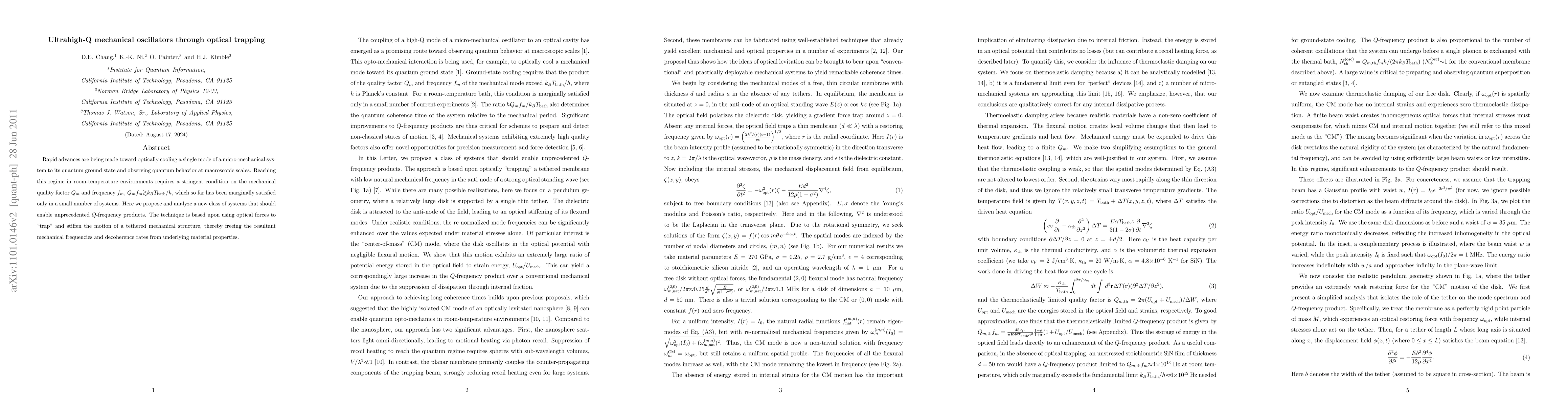 Rapid advances are being made toward optically cooling a single mode of a micro-mechanical system to its quantum ground state and observing quantum behavior at macroscopic scales. Reaching this regime in room-temperature environments requires a stringent condition on the mechanical quality factor $Q_m$ and frequency $f_m$, $Q_{m}f_{m}{\gtrsim}k_{B}T_{{bath}}/h$, which so far has been marginally satisfied only in a small number of systems. Here we propose and analyze a new class of systems that should enable unprecedented $Q_{m}f_m$ values. The technique is based upon using optical forces to "trap" and stiffen the motion of a tethered mechanical structure, thereby freeing the resultant mechanical frequencies and decoherence rates from underlying material properties.