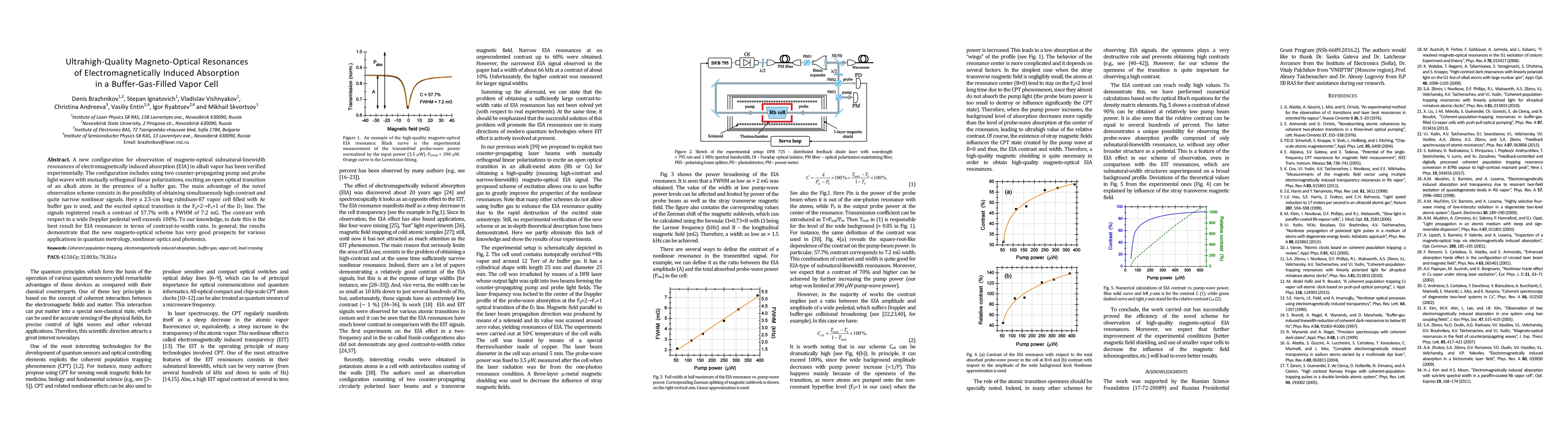 This research demonstrates a novel experimental setup for observing magneto-optical resonances using electromagnetically induced absorption in a rubidium vapor cell filled with argon gas, achieving high-contrast and narrow signals. The setup employs counter-propagating light waves for optimal results, marking the best contrast-to-width ratio for such resonances to date.