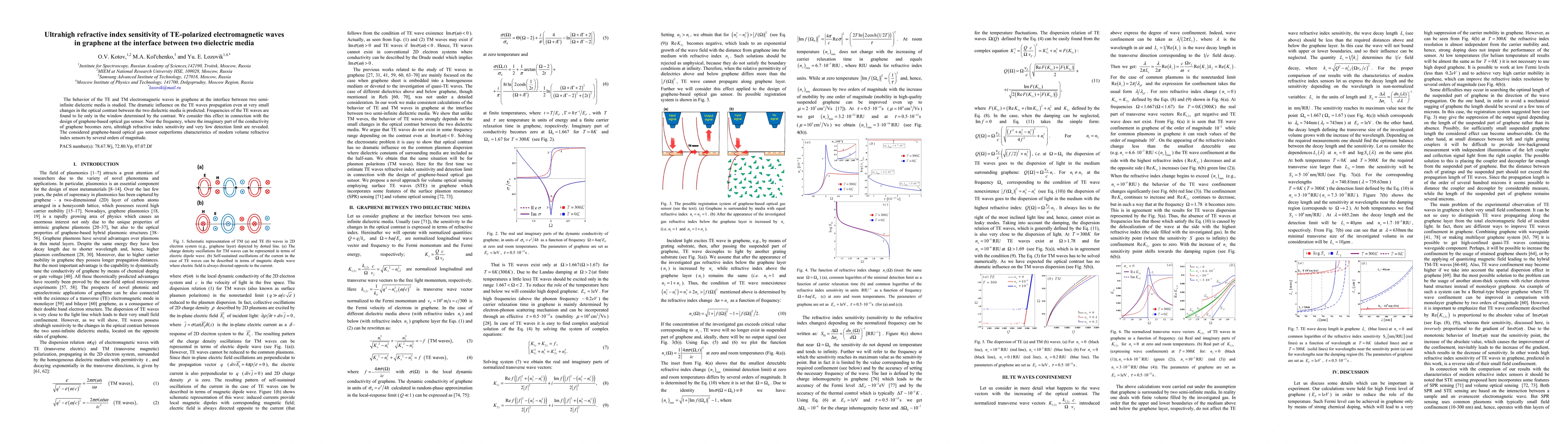 This paper investigates the TE-polarized electromagnetic wave propagation in graphene at the interface between two dielectric media, revealing significant sensitivity to refractive index changes. The study highlights the potential for designing ultrahigh sensitivity graphene-based optical gas sensors, outperforming current refractive index sensors by several orders of magnitude.