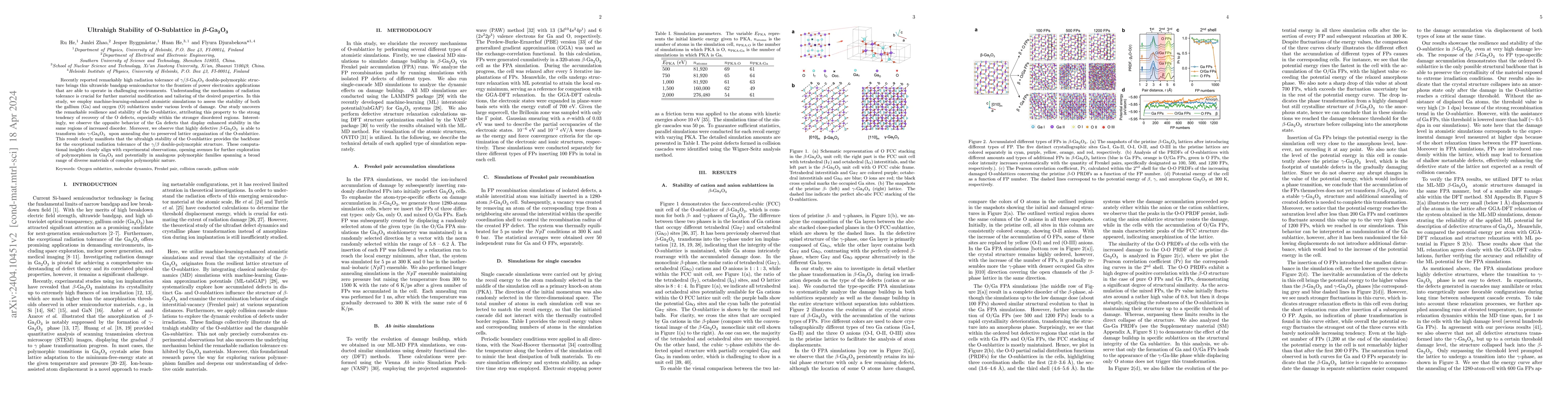 This study uses machine-learning-enhanced simulations to demonstrate the exceptional stability of the oxygen sublattice in $\beta$-Ga$_2$O$_3$, attributing its high radiation tolerance to the recovery of oxygen defects, especially in disordered regions. The findings suggest that the O-sublattice's resilience underpins the overall stability and transformation potential of $\beta$-Ga$_2$O$_3$ under damage.