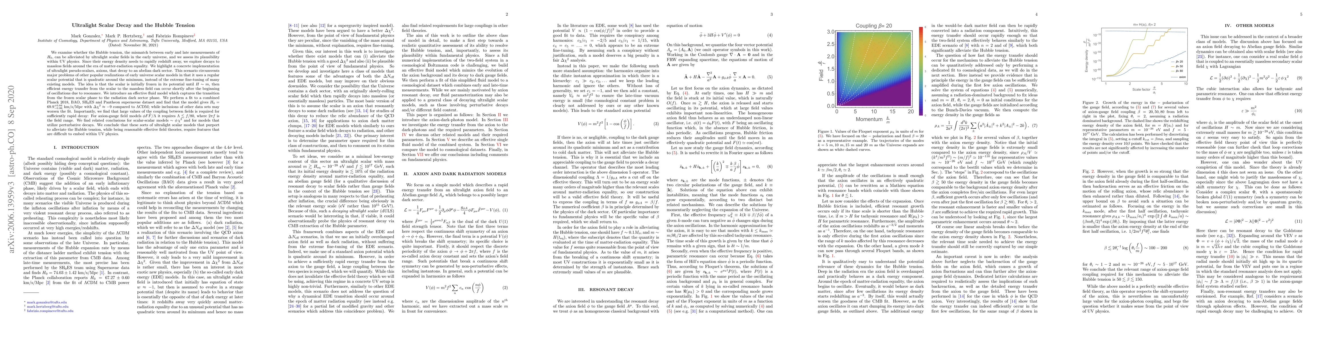 We examine whether the Hubble tension, the mismatch between early and late measurements of $H_0$, can be alleviated by ultralight scalar fields in the early universe, and we assess its plausibility within UV physics. Since their energy density needs to rapidly redshift away, we explore decays to massless fields around the era of matter-radiation equality. We highlight a concrete implementation of ultralight pseudo-scalars, axions, that decay to an abelian dark sector. This scenario circumvents major problems of other popular realizations of early universe scalar models in that it uses a regular scalar potential that is quadratic around the minimum, instead of the extreme fine-tuning of many existing models. The idea is that the scalar is initially frozen in its potential until $H\sim m$, then efficient energy transfer from the scalar to the massless field can occur shortly after the beginning of oscillations due to resonance. We introduce an effective fluid model which captures the transition from the frozen scalar phase to the radiation dark sector phase. We perform a fit to a combined Planck 2018, BAO, SH$_0$ES and Pantheon supernovae dataset and find that the model gives $H_0=69.9_{-0.86}^{+0.84}$ km/s/Mpc with $\Delta\chi^2 \approx -9$ compared to $\Lambda$CDM; while inclusions of other data sets may worsen the fit. Importantly, we find that large values of the coupling between fields is required for sufficiently rapid decay: For axion-gauge field models $\phi F\tilde{F}/\Lambda$ it requires $\Lambda\lesssim f/80$, where $2\pi f$ is the field range. We find related conclusions for scalar-scalar models $\sim\phi\,\chi^2$ and for models that utilize perturbative decays. We conclude that these sorts of ultralight scalar models that purport to alleviate the Hubble tension, while being reasonable effective field theories, require features that are difficult to embed within UV physics.