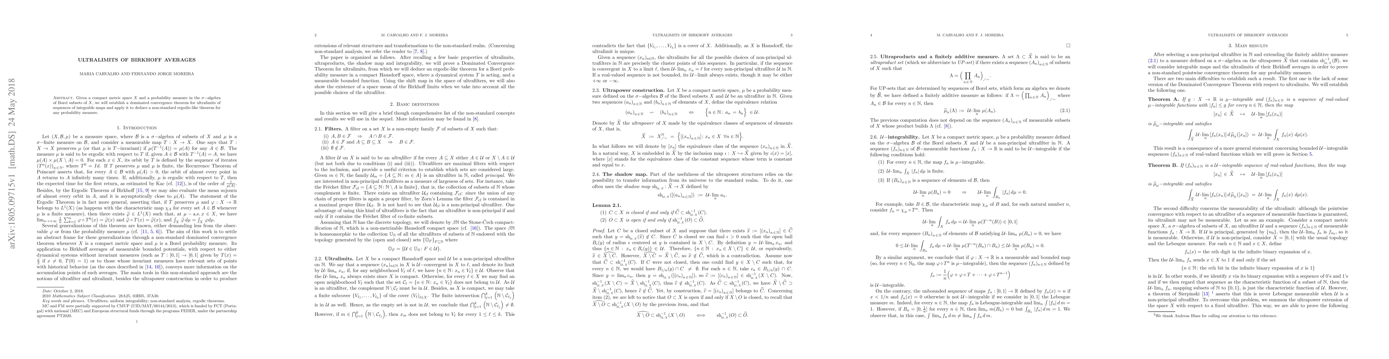 This paper establishes a dominated convergence theorem for ultralimits of integrable maps on a compact metric space, and applies it to derive a non-standard ergodic-like theorem applicable to any probability measure.