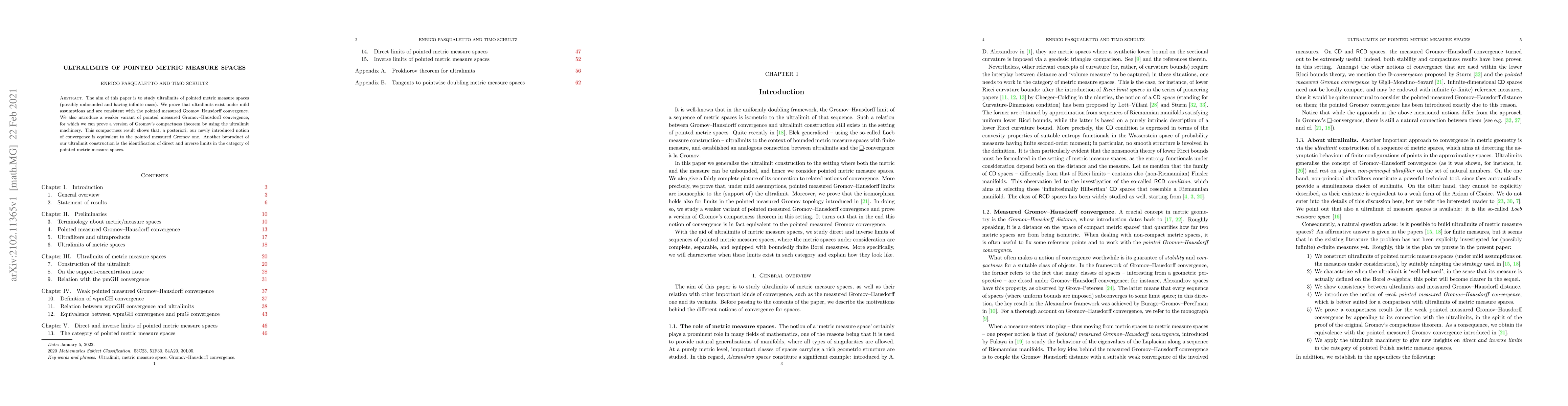 This paper studies ultralimits of pointed metric measure spaces, proving their existence under mild conditions and their consistency with pointed measured Gromov-Hausdorff convergence. It introduces a weaker convergence notion and demonstrates its equivalence to the standard one via a compactness theorem, also identifying direct and inverse limits in the category of such spaces.