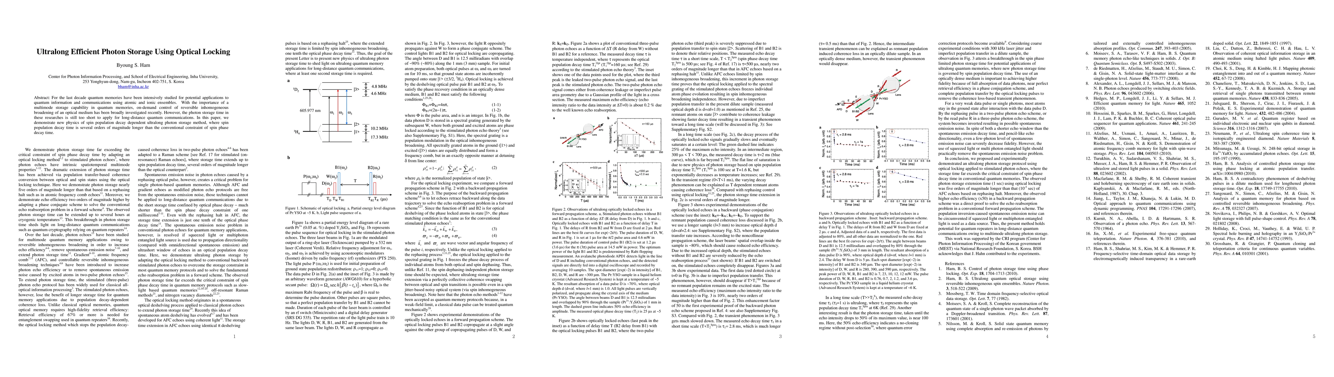 This paper presents a novel ultralong photon storage method using optical locking, achieving significantly longer storage times than conventional methods, which is crucial for long-distance quantum communication applications. The technique leverages spin population decay times that are several orders of magnitude longer than the typical spin phase decay time.