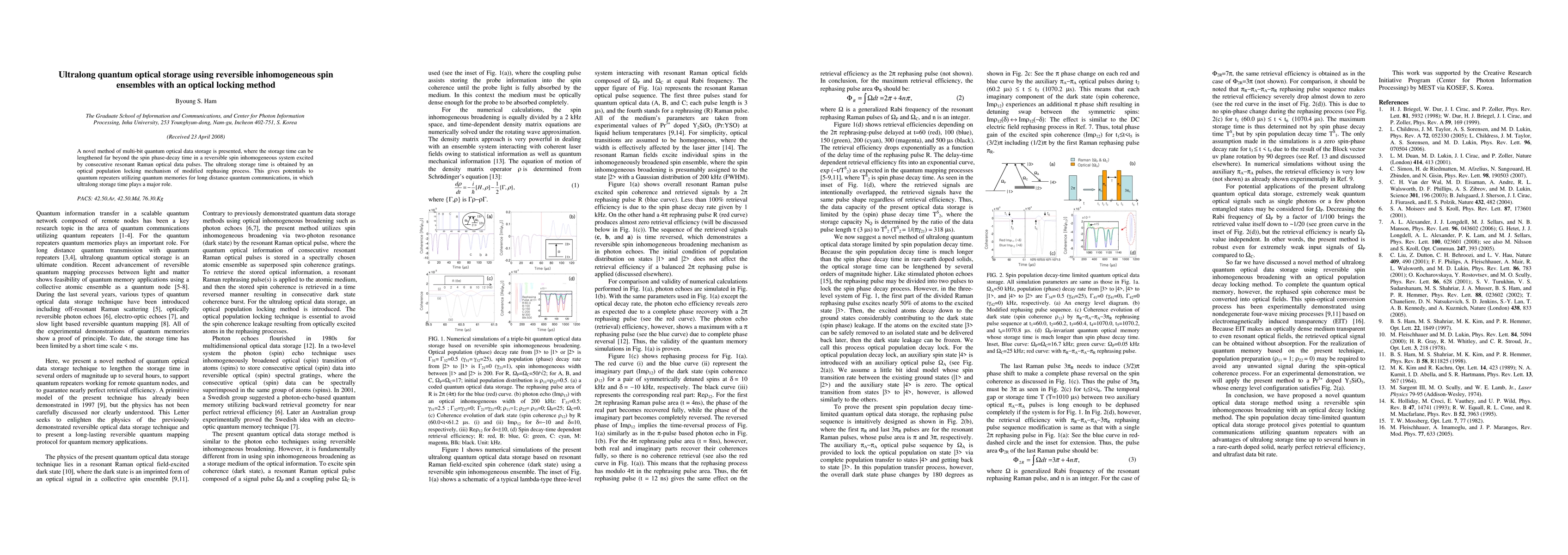 This paper introduces a new method for ultralong quantum optical data storage using reversible spin inhomogeneous ensembles and an optical locking technique, significantly extending storage time beyond spin phase-decay limits. The proposed optical population locking mechanism enhances potential applications in quantum repeaters for long-distance quantum communication.