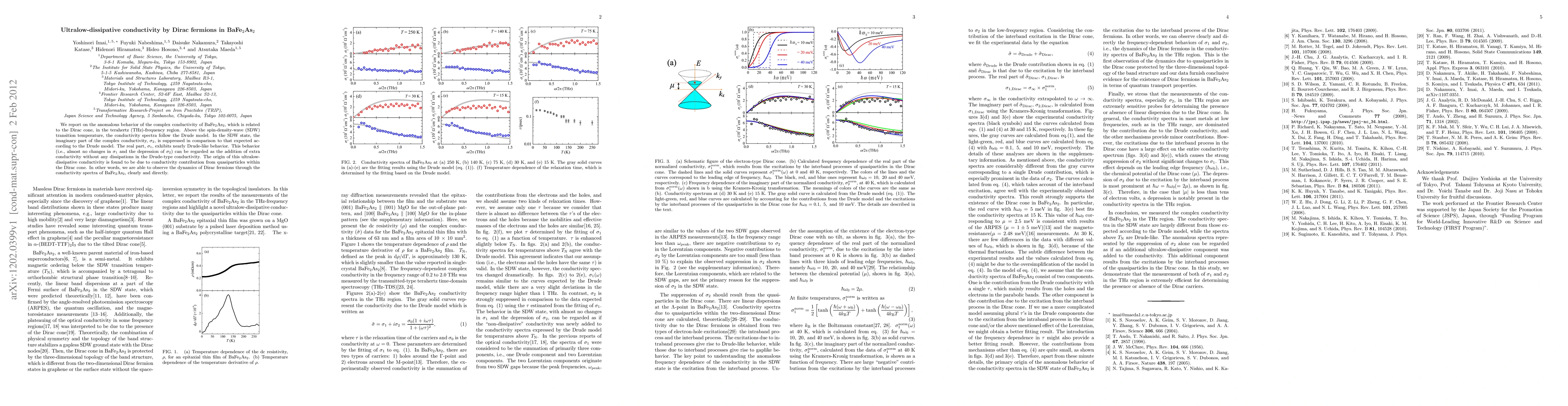 This study reveals ultralow-dissipative conductivity in BaFe$_2$As$_2$ above its SDW transition, attributed to Dirac cone quasiparticles. In the SDW state, the imaginary part of the complex conductivity is significantly suppressed, indicating minimal dissipation despite nearly Drude-like real part behavior.