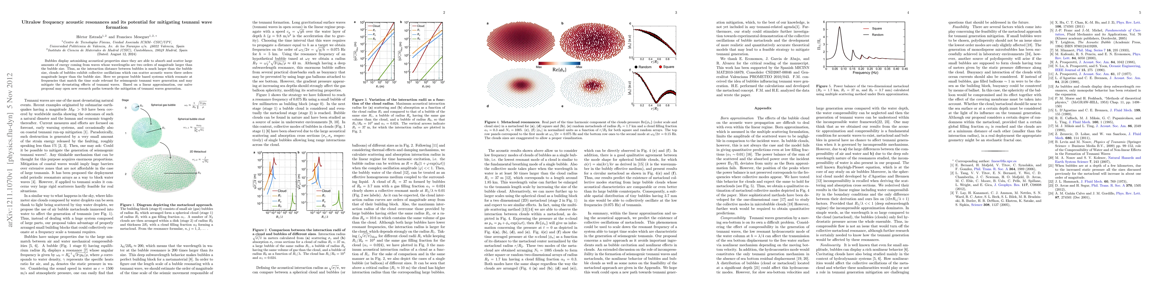 Bubbles display astonishing acoustical properties since they are able to absorb and scatter large amounts of energy coming from waves whose wavelengths are two orders of magnitude larger than the bubble size. Thus, as the interaction distance between bubbles is much larger than the bubble size, clouds of bubbles exhibit collective oscillations which can scatter acoustic waves three orders magnitude larger than the bubble size. Here we propose bubble based systems which resonate at frequencies that match the time scale relevant for seismogenic tsunami wave generation and may mitigate the devastating effects of tsunami waves. Based on a linear approximation, our na\"ive proposal may open new research paths towards the mitigation of tsunami waves generation.