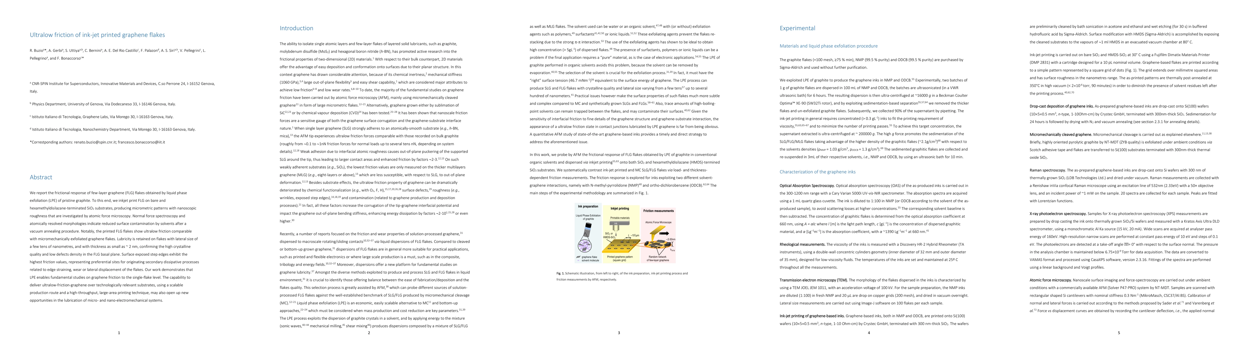 This paper investigates the ultralow friction properties of ink-jet printed few-layer graphene flakes, demonstrating comparable lubricity to micromechanically exfoliated graphene. The study highlights the potential of liquid phase exfoliation and scalable printing techniques for producing high-quality graphene flakes suitable for lubrication in micro- and nano-electromechanical systems.