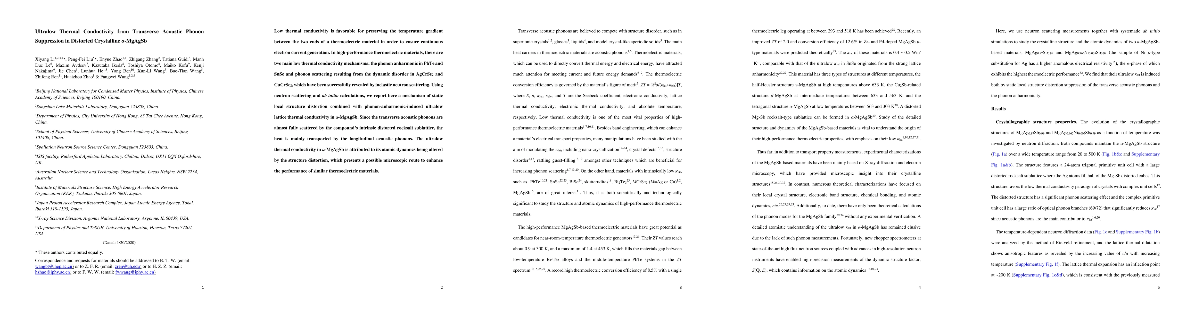 This paper reports a mechanism of ultralow thermal conductivity in {\alpha}-MgAgSb due to the suppression of transverse acoustic phonons by intrinsic structural distortions, enhancing thermoelectric performance. The study combines neutron scattering and ab initio calculations to reveal how local distortions lead to phonon scattering, primarily affecting heat transport.