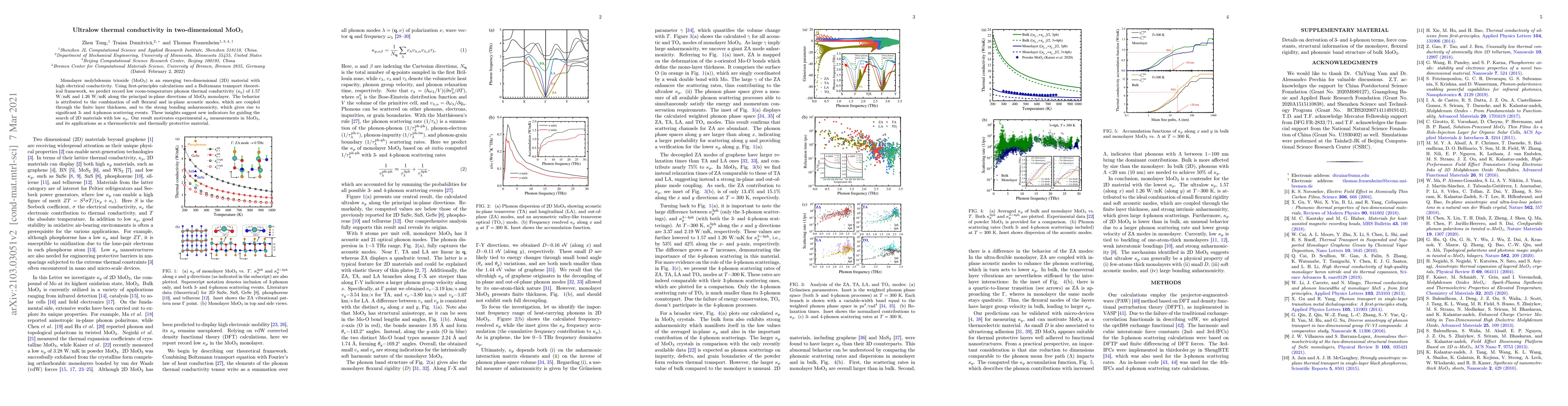 This paper predicts ultralow room-temperature phonon thermal conductivity in monolayer MoO$_3$ due to its unique phonon modes and strong anharmonicity, suggesting potential for thermoelectric and thermal protection applications. Experimental validation and further exploration of 2D materials with similar properties are encouraged.