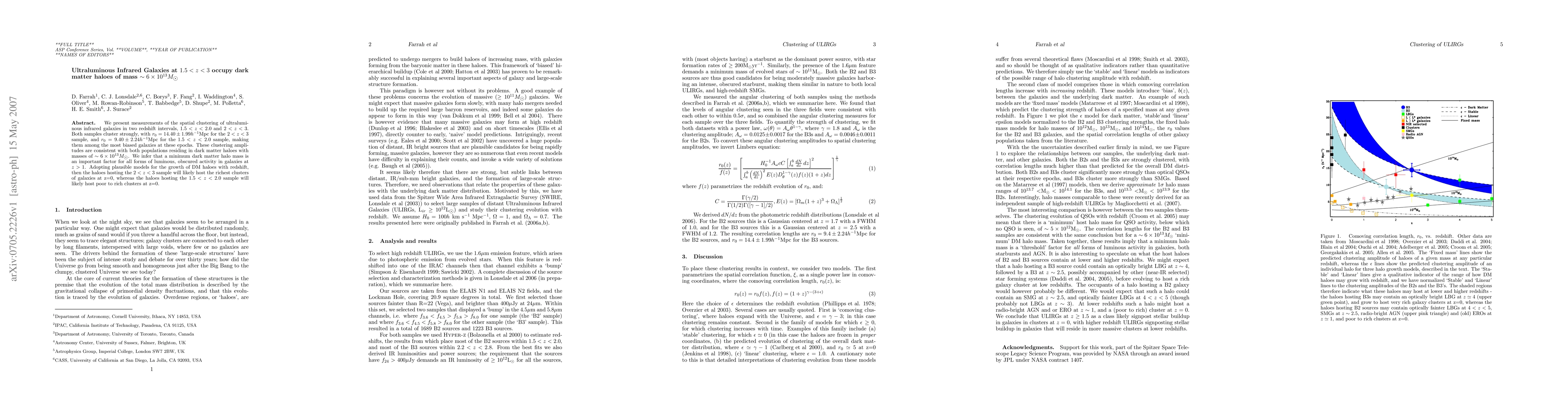 Ultraluminous infrared galaxies at 1.5<z<3 exist in dark matter haloes of ~6x10^13 solar masses, with implications for galaxy growth and clustering patterns.