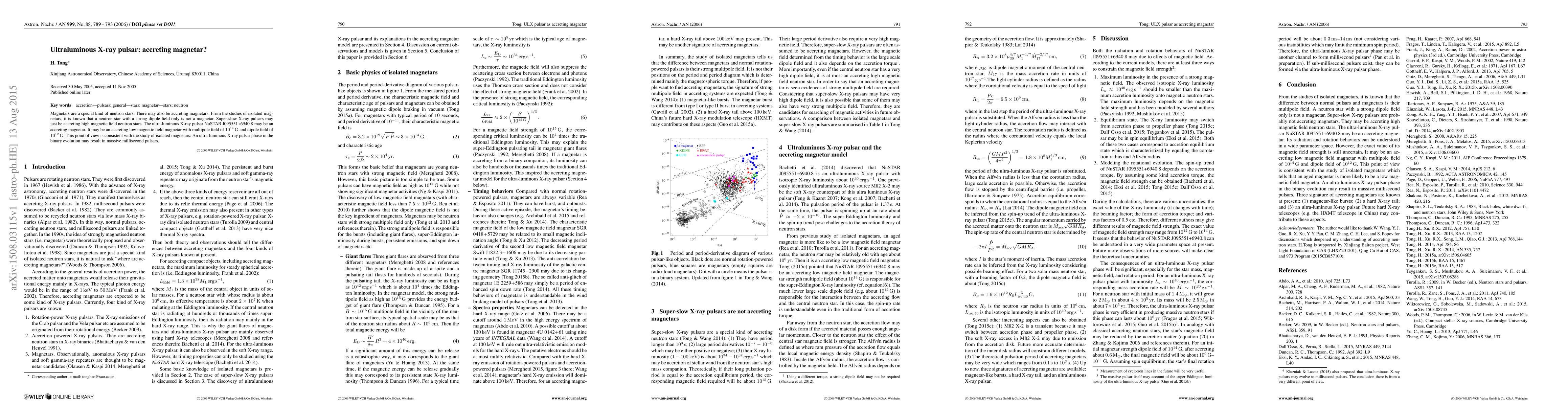 Magnetars are a special kind of neutron stars. There may also be accreting magnetars. From the studies of isolated magnetars, it is known that a neutron star with a strong dipole field only is not a magnetar. Super-slow X-ray pulsars may just be accreting high magnetic field neutron stars. The ultra-luminous X-ray pulsar NuSTAR J095551+6940.8 may be an accreting magnetar. It may be an accreting low magnetic field magnetar with multipole field of 10^14 G and dipole field of 10^12 G. This point of view is consistent with the study of isolated magnetars. An ultra-luminous X-ray pulsar phase in the binary evolution may result in massive millisecond pulsars.