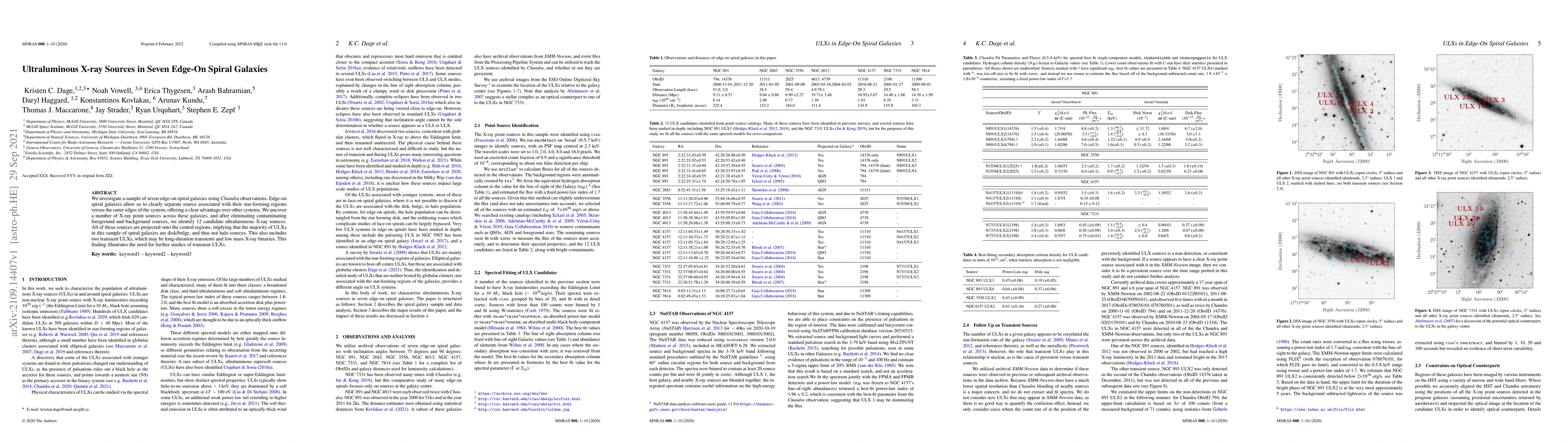We investigate a sample of seven edge-on spiral galaxies using Chandra observations. Edge-on spiral galaxies allow us to clearly separate source associated with their star-forming regions versus the outer edges of the system; offering a clear advantage over other systems. We uncover a number of X-ray point sources across these galaxies, and after eliminating contaminating foreground and background sources, we identify 12 candidate ultraluminous X-ray sources. All of these sources are projected onto the central regions, implying that the majority of ULXs in this sample of spiral galaxies are disk/bulge, and thus not halo sources. This also includes two transient ULXs, which may be long-duration transients and low mass X-ray binaries. This finding illustrates the need for further studies of transient ULXs.
