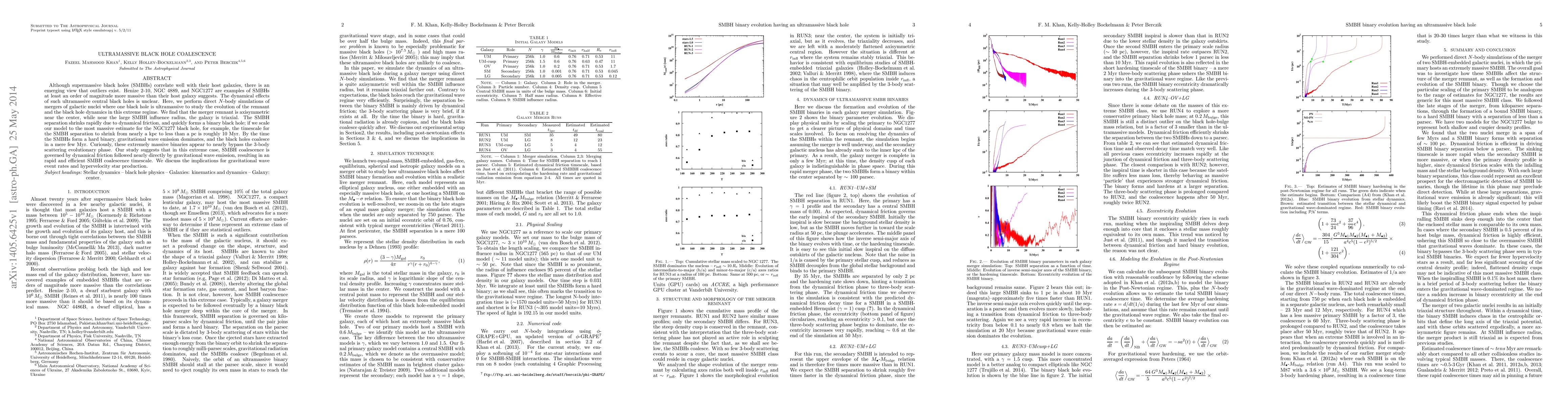 This study uses N-body simulations to explore the coalescence of ultramassive black holes in galactic nuclei mergers, finding that rapid dynamical friction leads to quick binary formation and efficient SMBH coalescence via gravitational wave emission, bypassing typical 3-body scattering phases. The implications include rapid coalescence timescales and potential impacts on gravitational wave event rates and hypervelocity star production.
