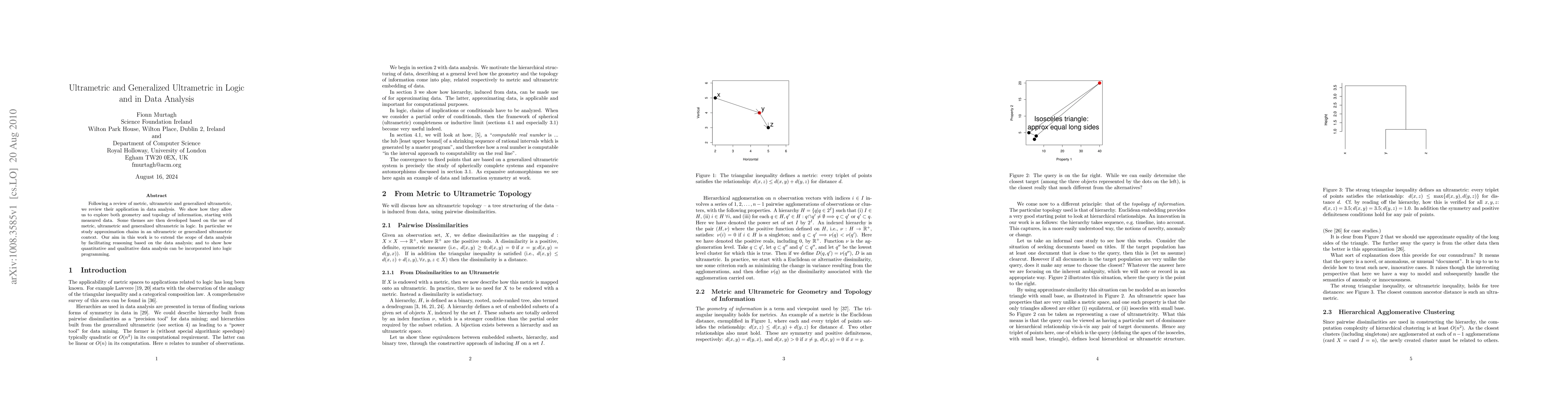 This paper explores the application of ultrametric and generalized ultrametric concepts in data analysis and computational logic, aiming to extend data analysis capabilities into logical reasoning and programming.
