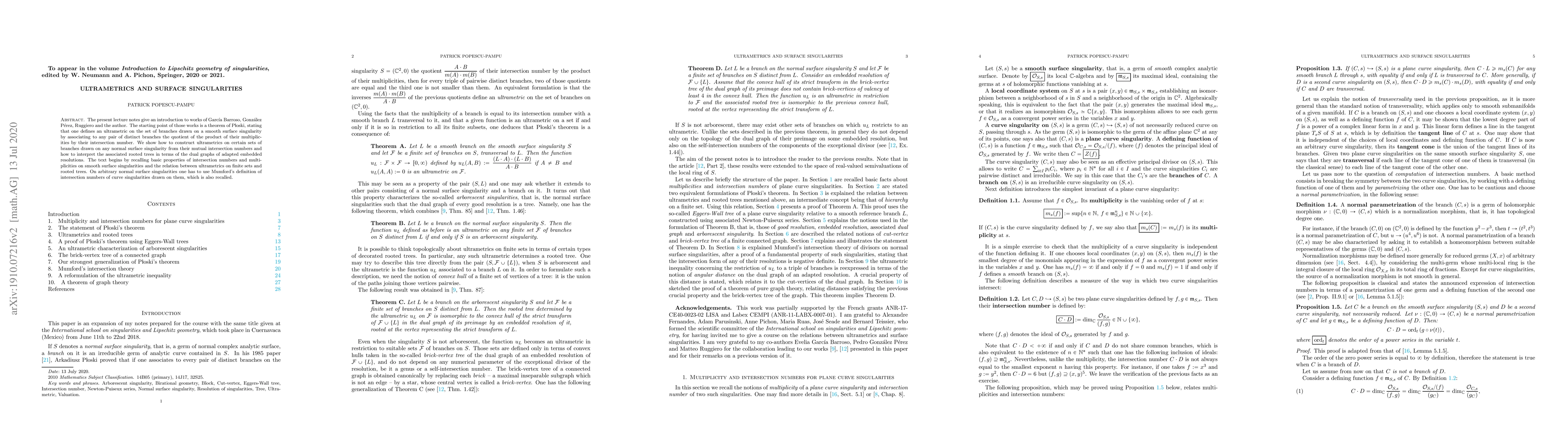 This paper introduces ultrametrics defined on branches of smooth surface singularities, based on Płoski's theorem, and extends this concept to normal surface singularities using intersection numbers. It also connects these ultrametrics to rooted trees and dual graphs of adapted embedded resolutions.