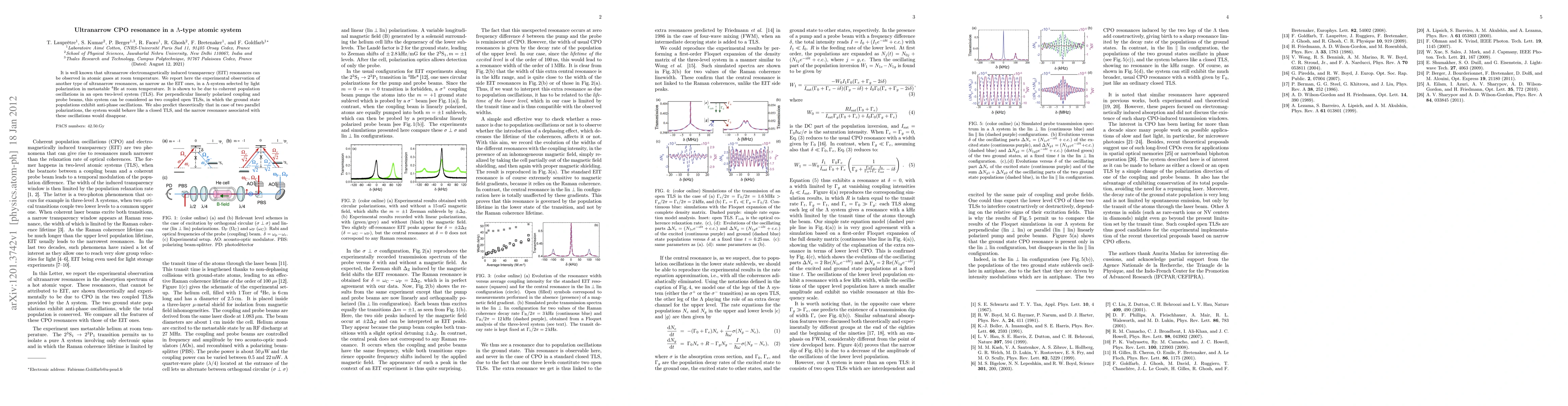 Researchers have discovered ultranarrow resonances in a metastable helium-4 system, similar to electromagnetically induced transparency, due to coherent population oscillations in an open two-level system.