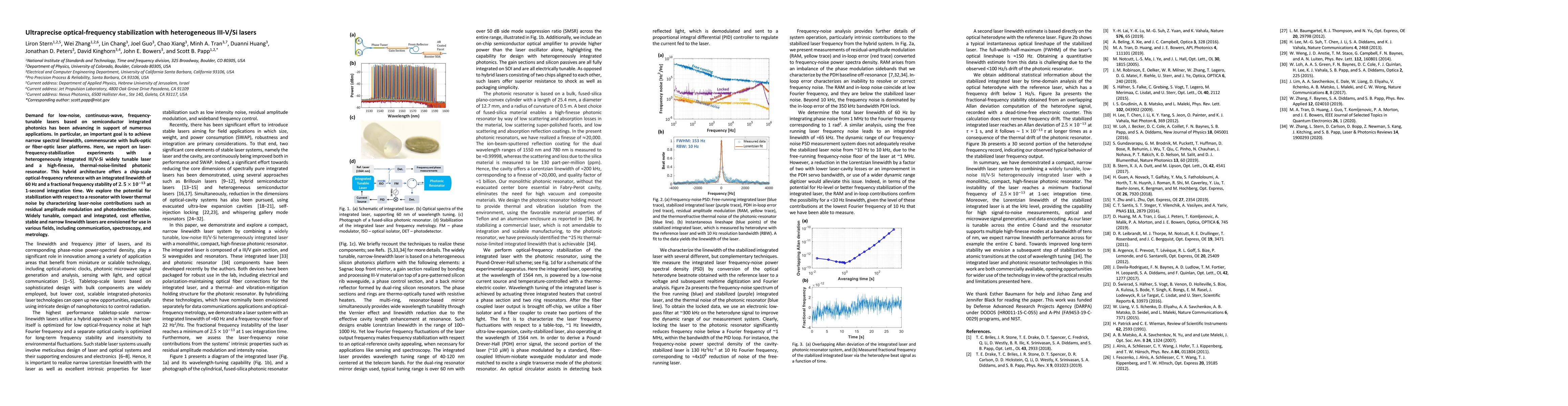 This paper reports on achieving ultraprecise laser-frequency stabilization using a heterogeneous III-V/Si integrated photonic laser and a high-finesse resonator, resulting in an integrated linewidth of 60 Hz and a fractional frequency stability of 2.5e-13 at 1-second integration time, suitable for applications in communication, spectroscopy, and metrology.